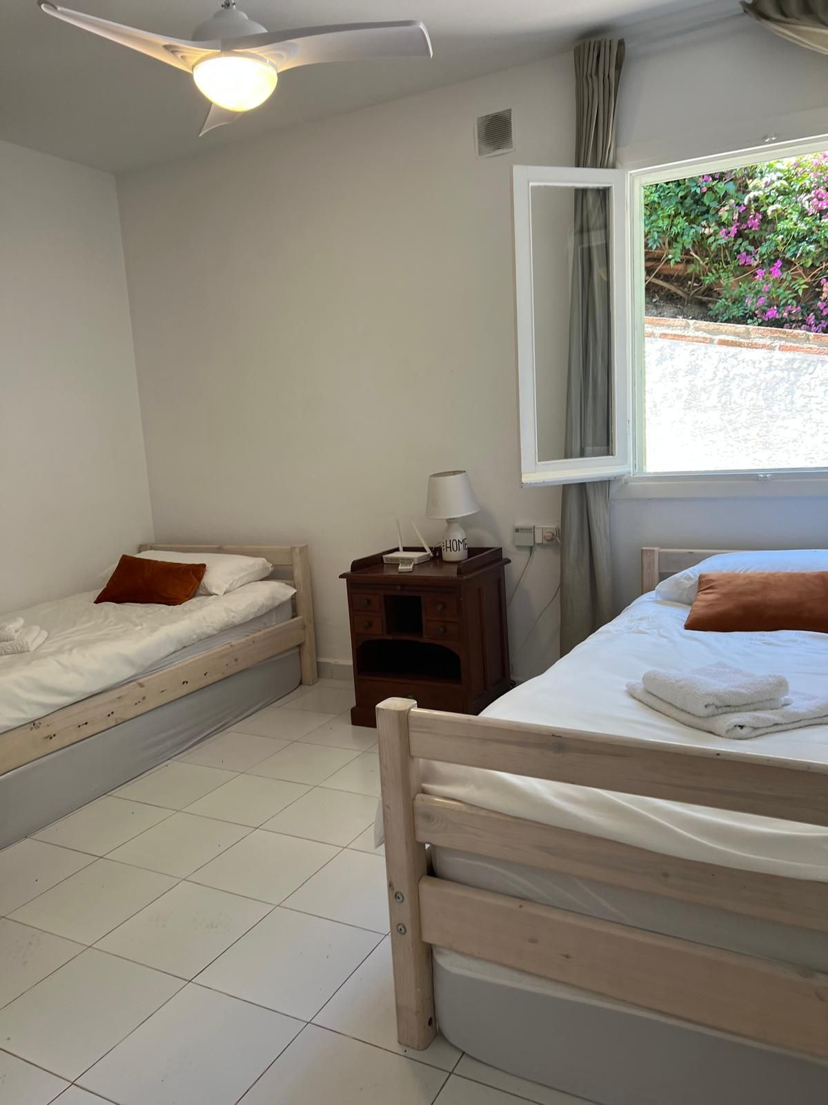 Alle soveværelser har garderobeskabe, og soveværelset har et stort ensuite badeværelse. Ejendommen inkluderer også aircondition (varm/kold), WiFi, opbevaringsrum, bryggers og grillplads.