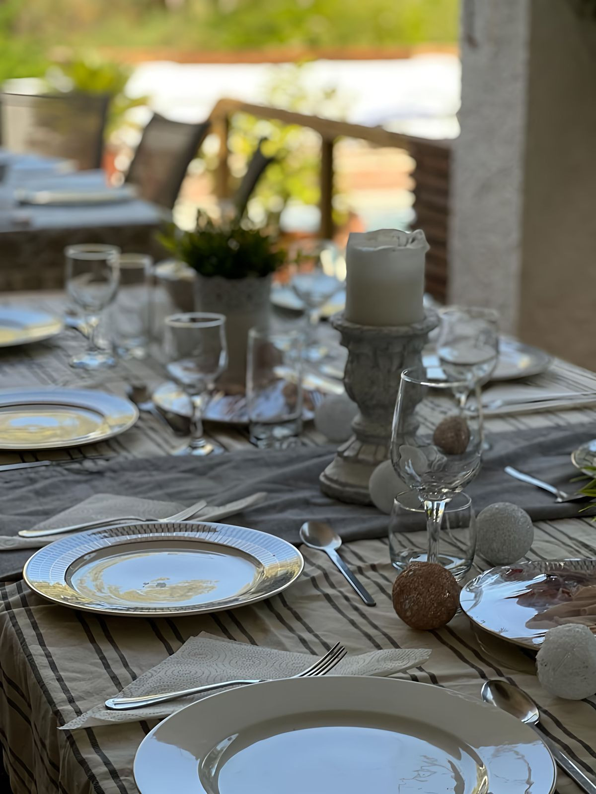 Flere overdækkede og åbne terrasser (30 m²) giver de ideelle steder til udendørs spisning eller afslapning, mens du nyder udsigten over den smukke have og private pool.