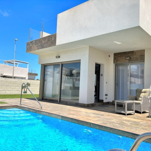 Welcome to this exclusive 2-storey villa in new condition, where modern comfort meets elegant design – a home for those looking for quality of life, proximity to the sea and a home beyond the ordinary. Here you live in an attractive location, only about 600 meters from the sparkling beaches of the Mediterranean, with restaurants, bars and shops within easy walking distance. Perfect both as a year-round residence and a luxurious holiday home!