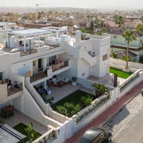 A home to enjoy – every day feels like a holiday Welcome to this homely apartment on two floors, with a sunny southeast orientation and a warm, inviting atmosphere. With its 104 square meters of built area, of which 90 are efficiently arranged, the home offers plenty of space for both relaxation and socializing. Here you live in a quiet and well-kept area with lush surroundings and access to a lovely communal pool - perfect for enjoying long, sunny days.