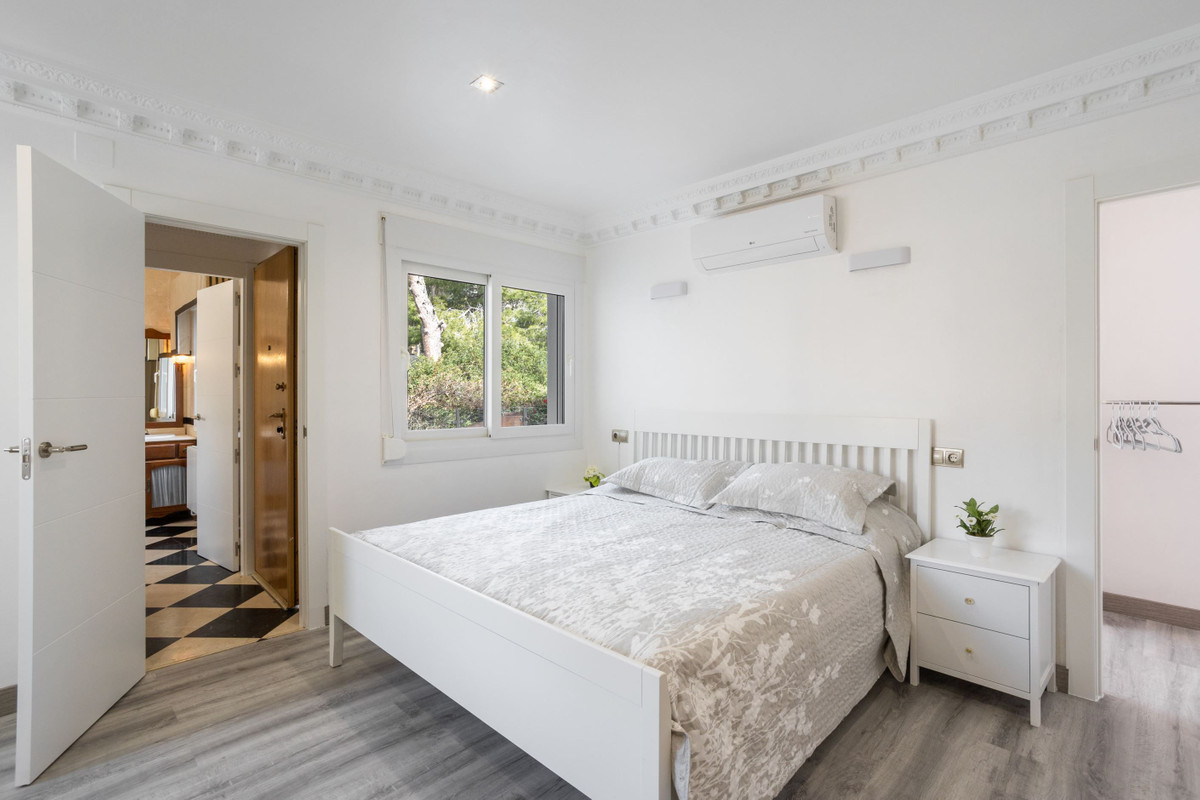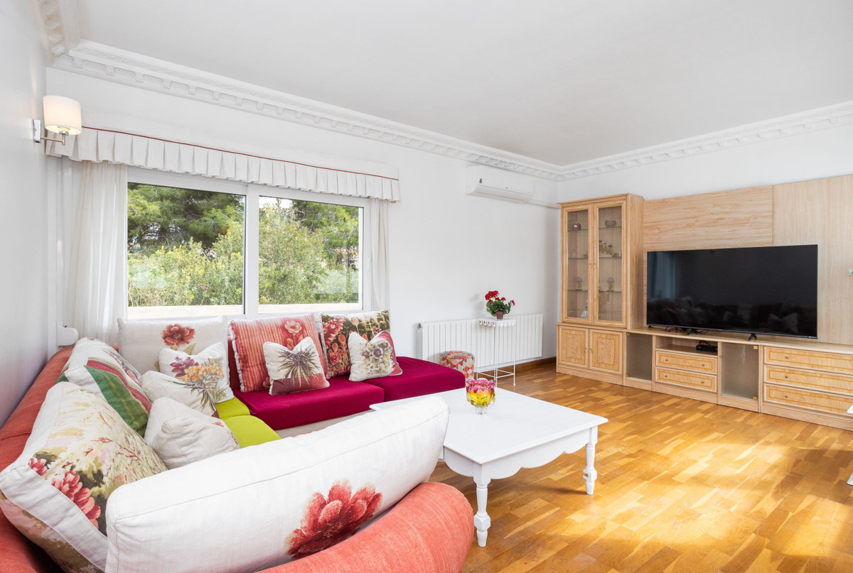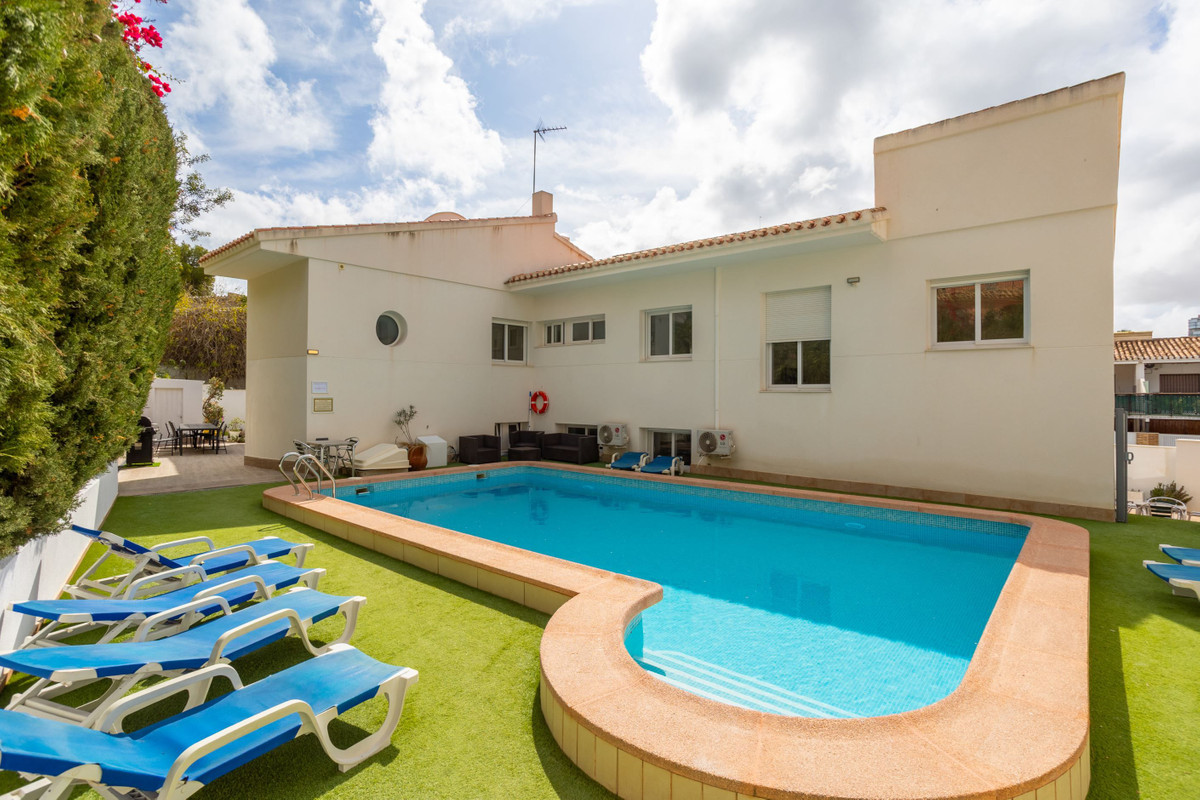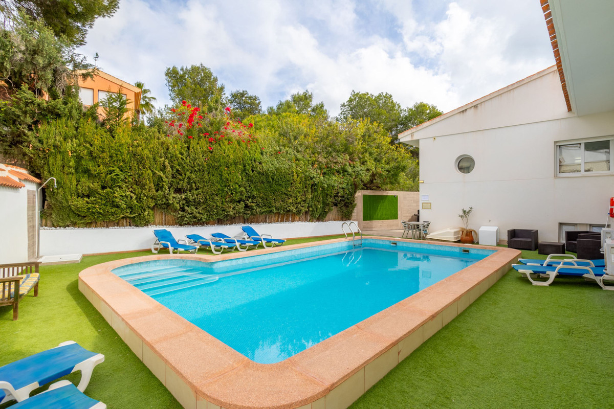 The villa is about 486 sq m in total and consists of two houses and is currently arranged as a private villa, but it is possible to arrange it as two separate townhouses with a shared garden. The villa has an inviting feel with lightly furnished areas. In addition, there are several patios and terraces and a large and spacious private pool in a nice location.
