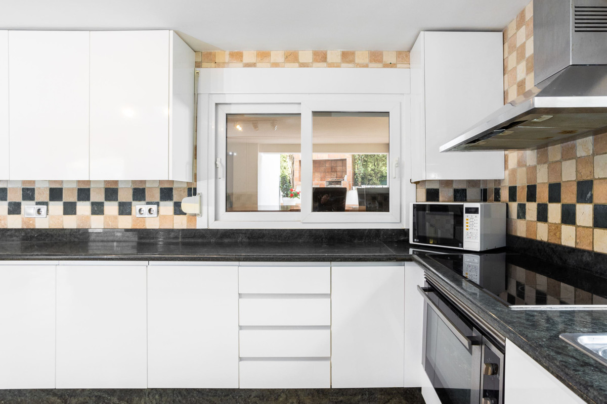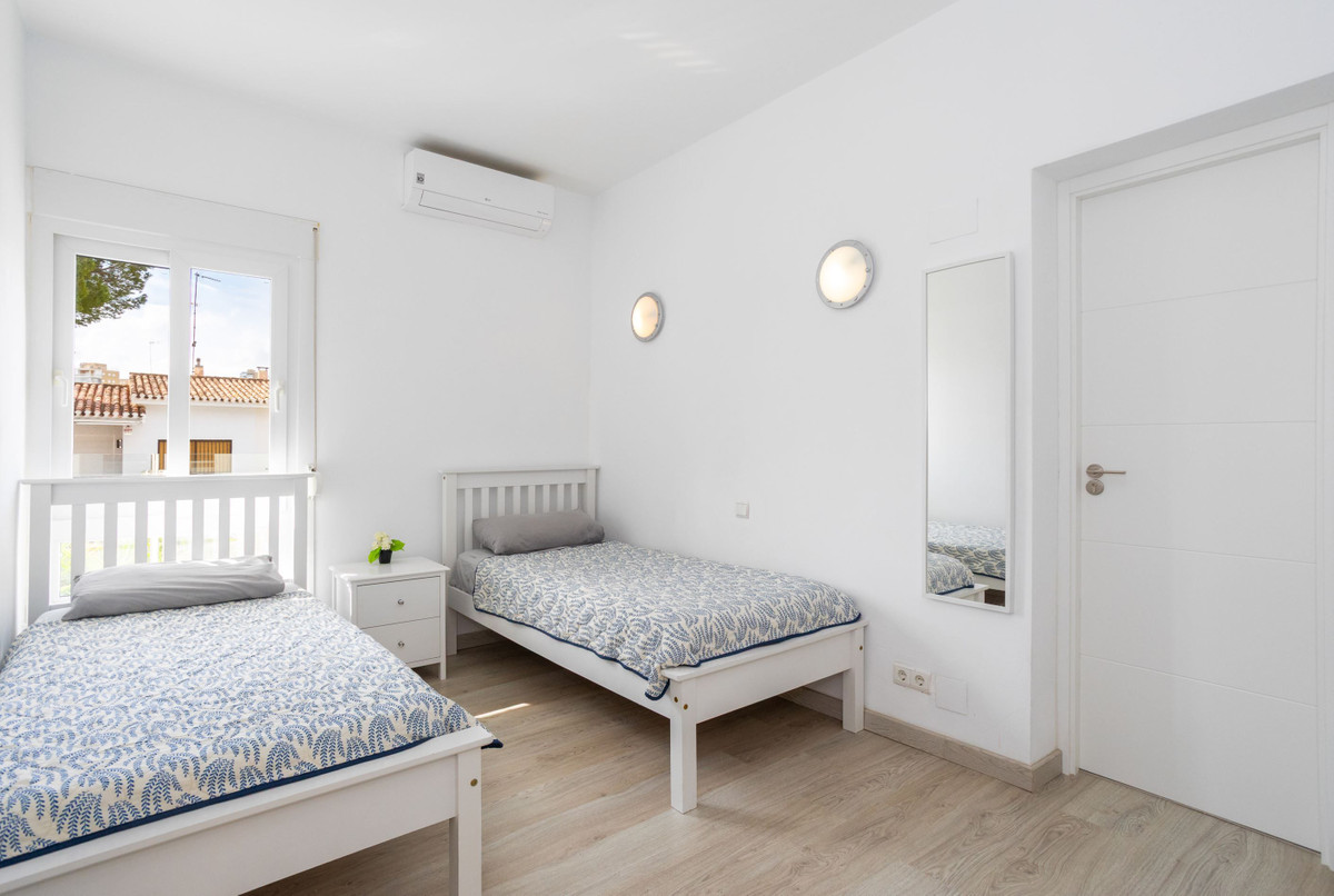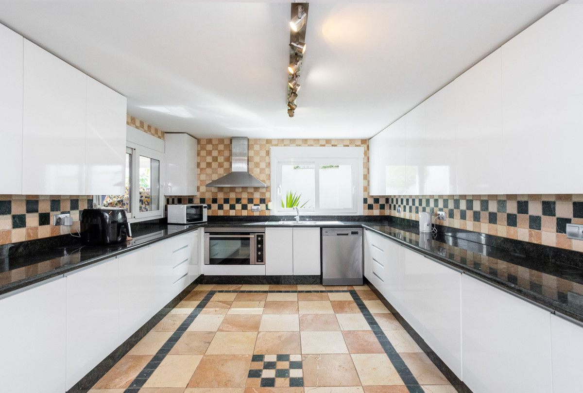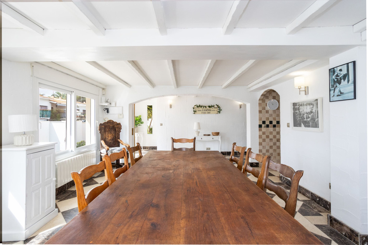 The villa is about 486 sq m in total and consists of two houses and is currently arranged as a private villa, but it is possible to arrange it as two separate townhouses with a shared garden. The villa has an inviting feel with lightly furnished areas. In addition, there are several patios and terraces and a large and spacious private pool in a nice location.