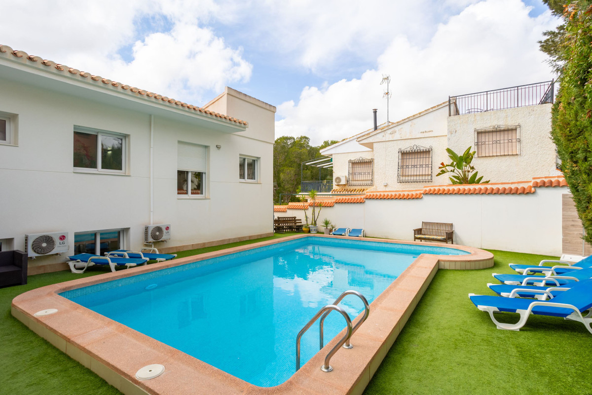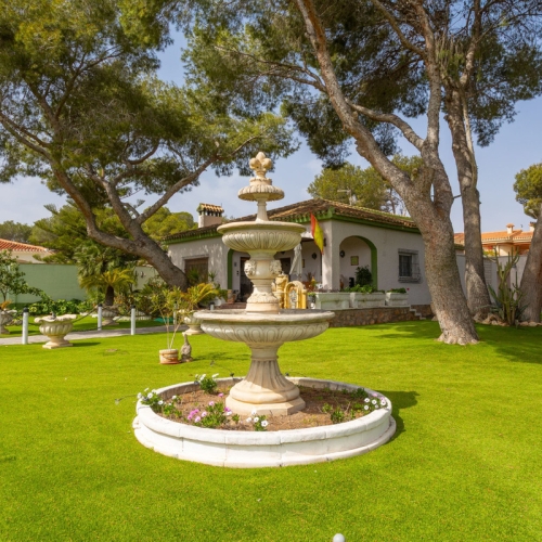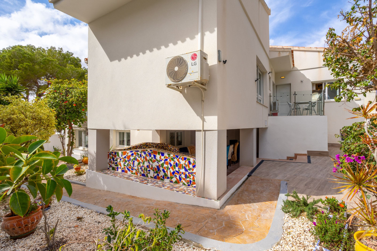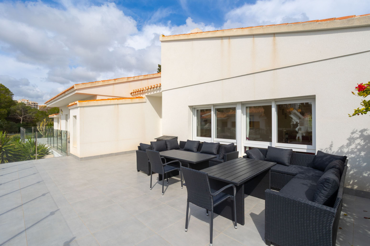 Villa with large areas and private pool near the beach A warm welcome to the popular area of Campoamor and this well-proportioned villa with an attractive location and many positive features, such as large windows, generous light flow and a homely feel. Here you live close to beautiful beaches, nice natural areas and a wide range of shops, restaurants and cafes. For those interested in golf, there are several well-known and well-maintained golf courses a short drive away.