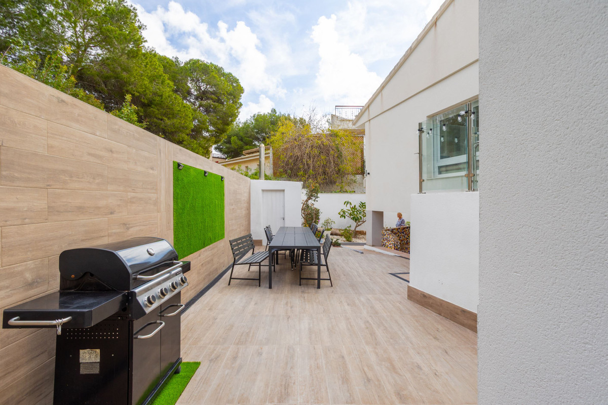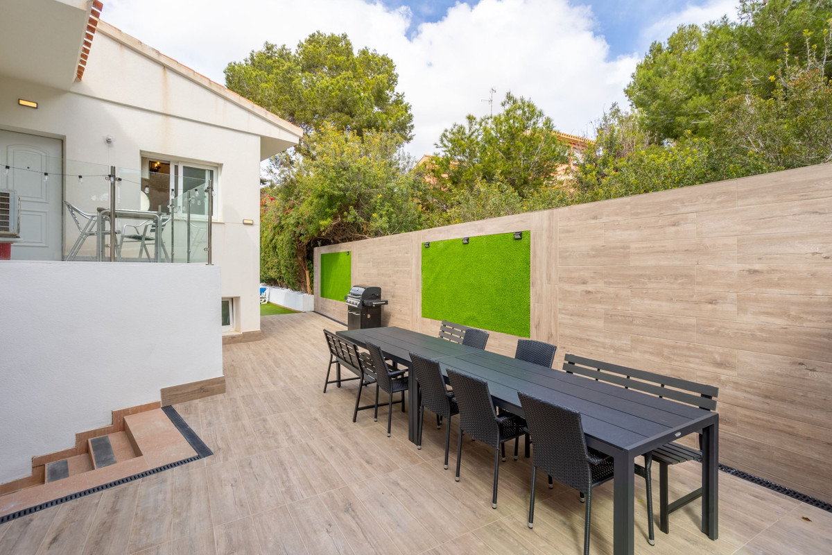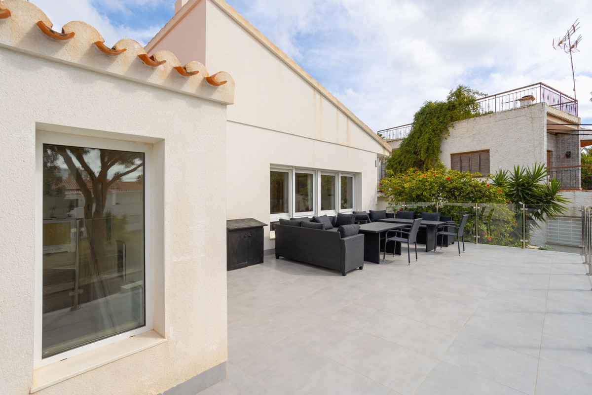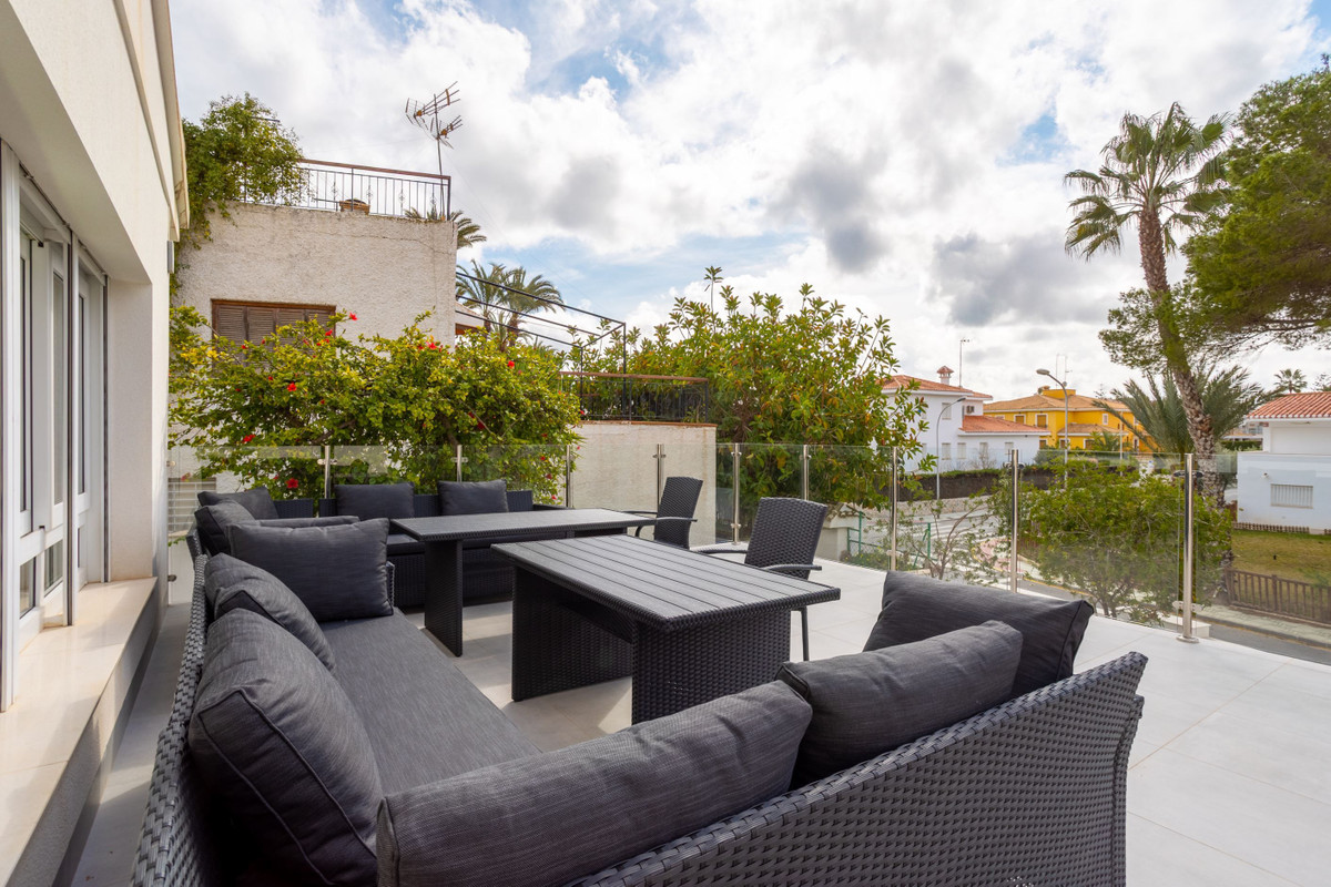 Villa with large areas and private pool near the beach A warm welcome to the popular area of Campoamor and this well-proportioned villa with an attractive location and many positive features, such as large windows, generous light flow and a homely feel. Here you live close to beautiful beaches, nice natural areas and a wide range of shops, restaurants and cafes. For those interested in golf, there are several well-known and well-maintained golf courses a short drive away.