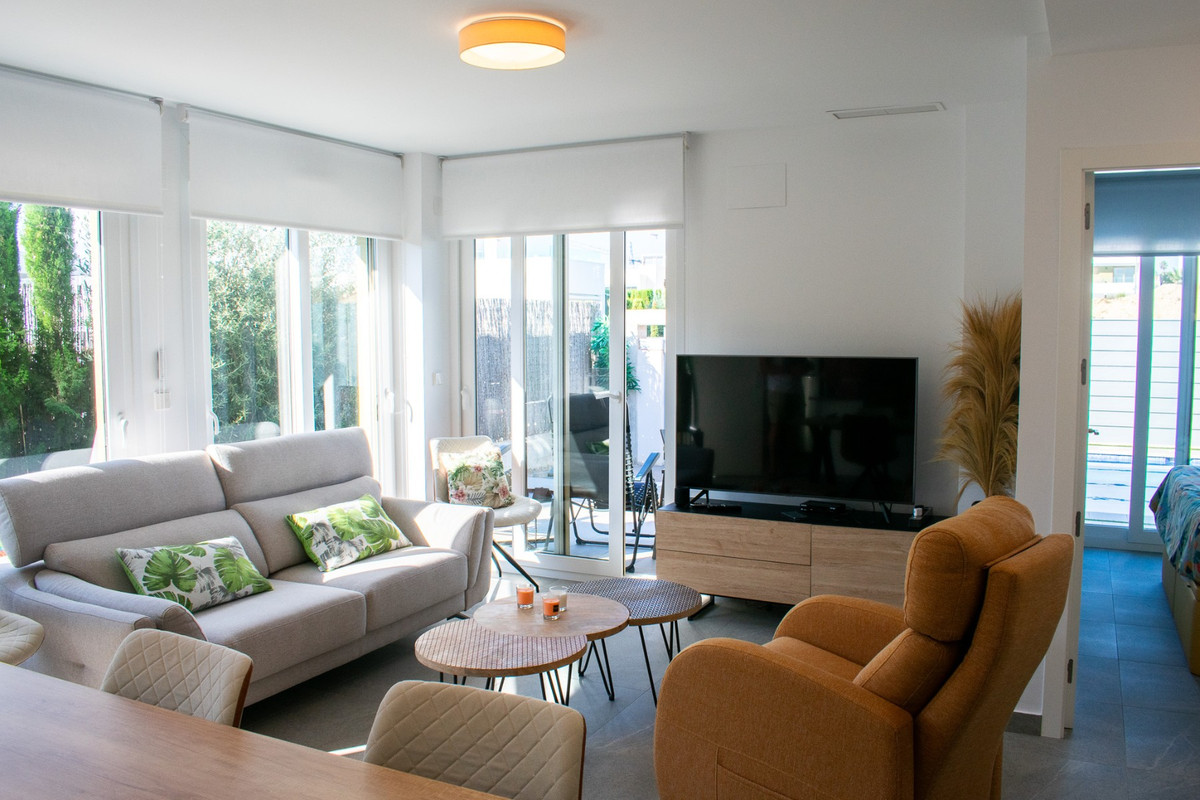 The renovated kitchen, featuring an American-style island, creates an ideal space for enjoying meals and entertaining, seamlessly integrating with the open-plan living room and outdoor area. Outside, you'll find a charming private heated pool , perfect for year-round enjoyment, surrounded by a landscaped garden and a terrace with unobstructed views, ideal for relaxing or entertaining. In addition, it features solar panels for greater energy efficiency, a large storage room under the stairs leading to the rooftop, and an AirZone system that allows for temperature regulation via a central climate control system. It also includes private parking within the property and pre-installation for a jacuzzi. The house is being sold fully furnished, both inside and out. A property that offers style, comfort and sustainability , in a privileged location, surrounded by nature, golf courses and just minutes from the beaches of the Costa Blanca .\n