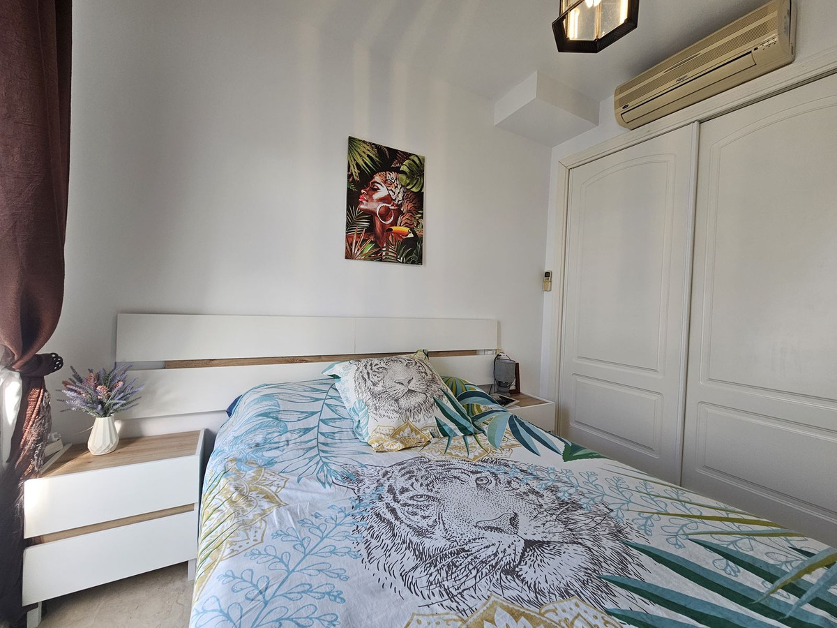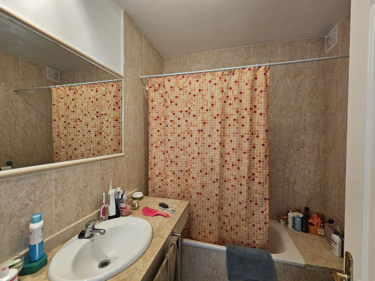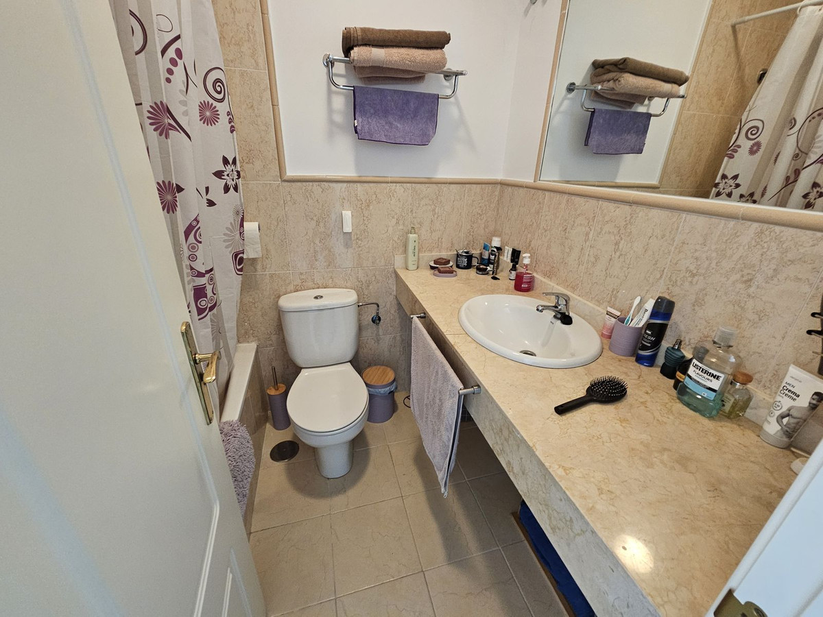 Indgangen fra parkeringspladsen er på ejendommens nederste niveau. På nederste niveau finder du to soveværelser, som begge har eget badeværelse. To soveværelser er store og har udgang til en sydvestvendt terrasse. Der er en stor fælles pool; der er også en børnepool. Det fælles poolområde har brusere.