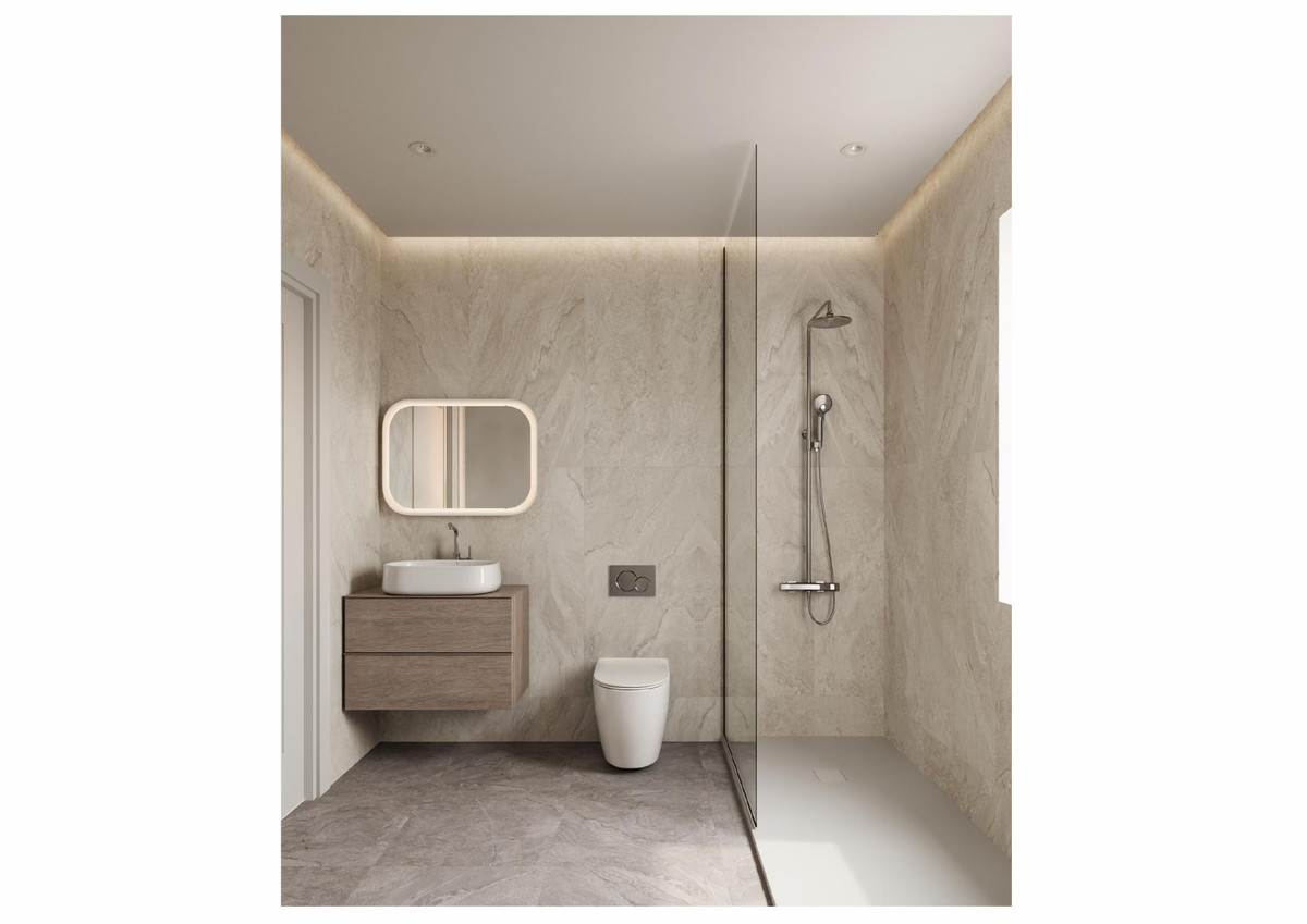 • Stueetage: rummelig opholdsstue i åbent plan med køkken, direkte adgang til poolen, gæsteværelse, badeværelse og walk-in-closet. Designet skaber et lyst, sammenhængende rum – ideelt til familie og gæster.