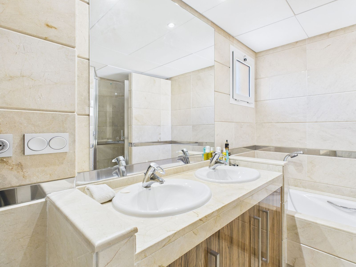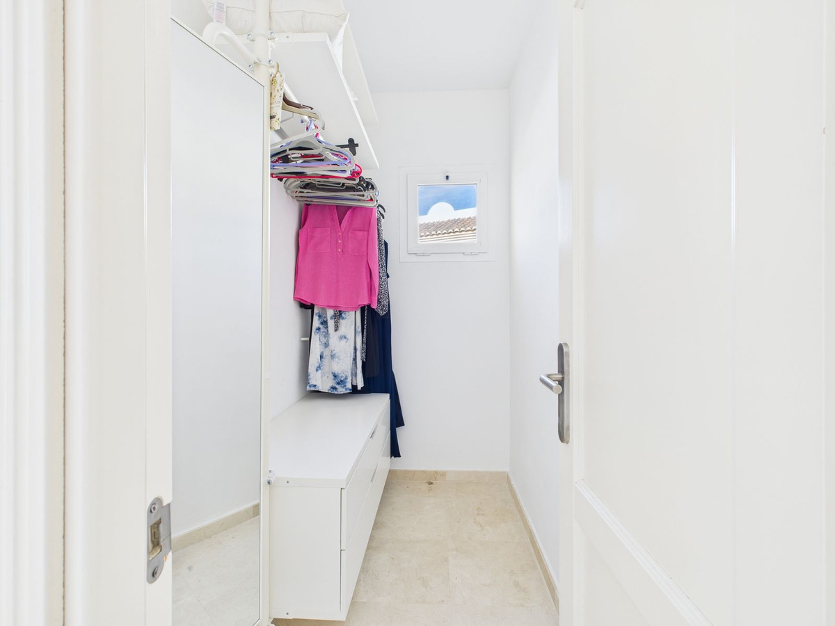 Additional features include a guest cloakroom, laundry room, air conditioning (hot and cold), two private parking spaces, a storage room, and golf buggy parking. The community also offers 24-hour security, giving you complete peace of mind in this serene and exclusive setting.