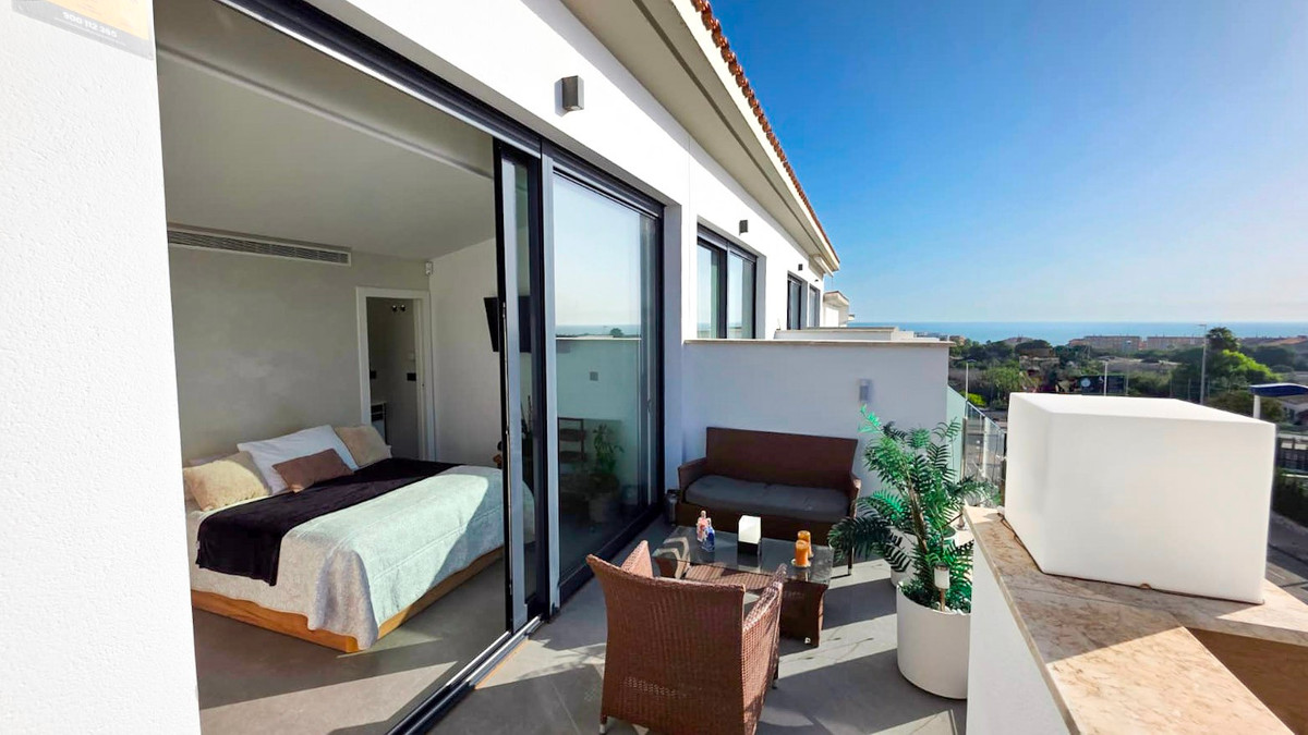 The spacious living-dining room offers a warm and bright atmosphere, with direct access to a private terrace offering stunning sea and mountain views , which can also be appreciated from two of the bedrooms . The fully equipped, open-plan kitchen is designed for those who value style and practicality. On the lower level, a multipurpose space with natural light from the ceiling offers multiple possibilities—it can be used as an additional bedroom, home theater, playroom, dressing room, or storage area.\n