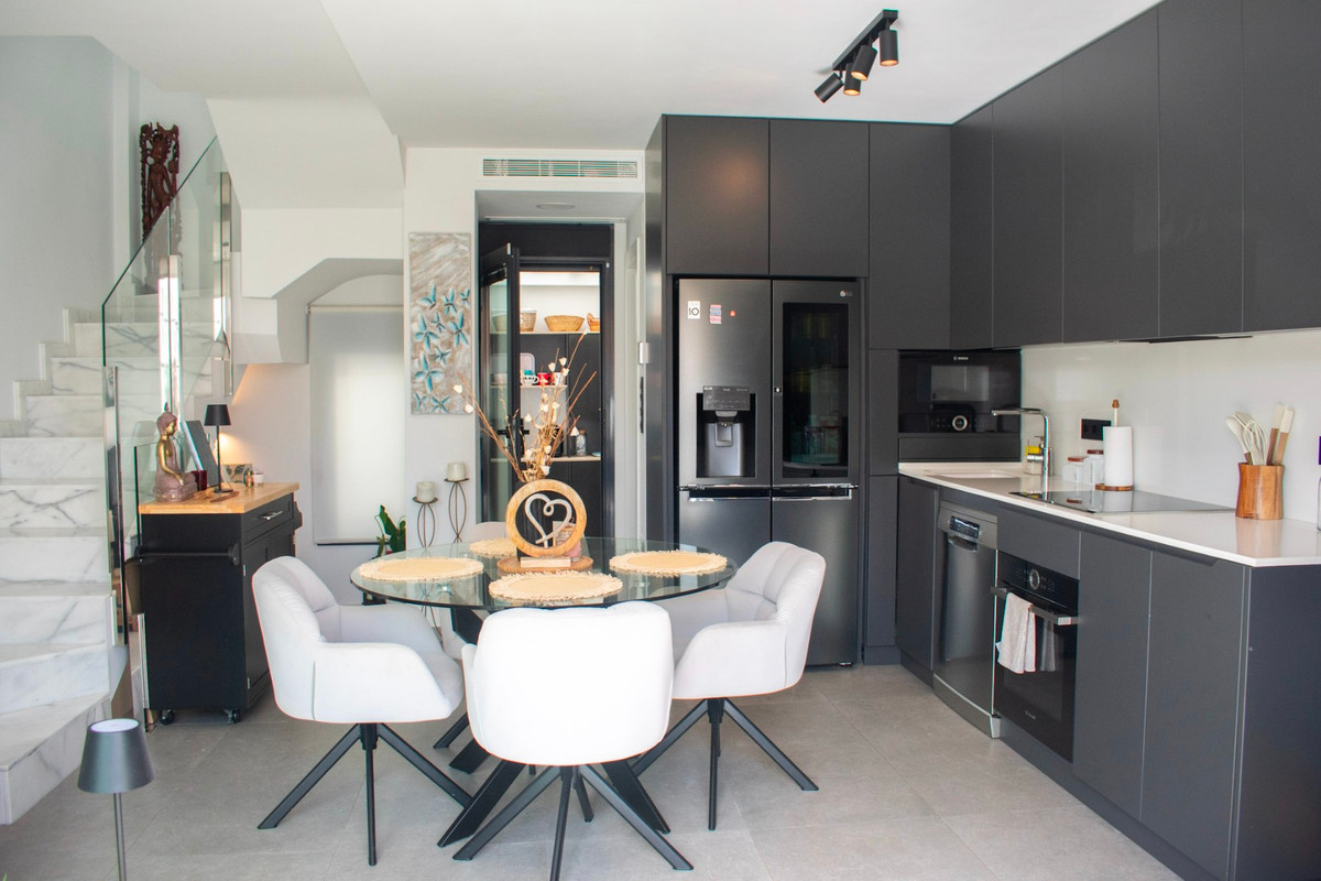 Discover this elegant townhouse , located in one of the most exclusive areas of Guardamar del Segura , on the Costa Blanca . With a contemporary design and high-quality finishes , this property combines modern comfort with Mediterranean charm.\n