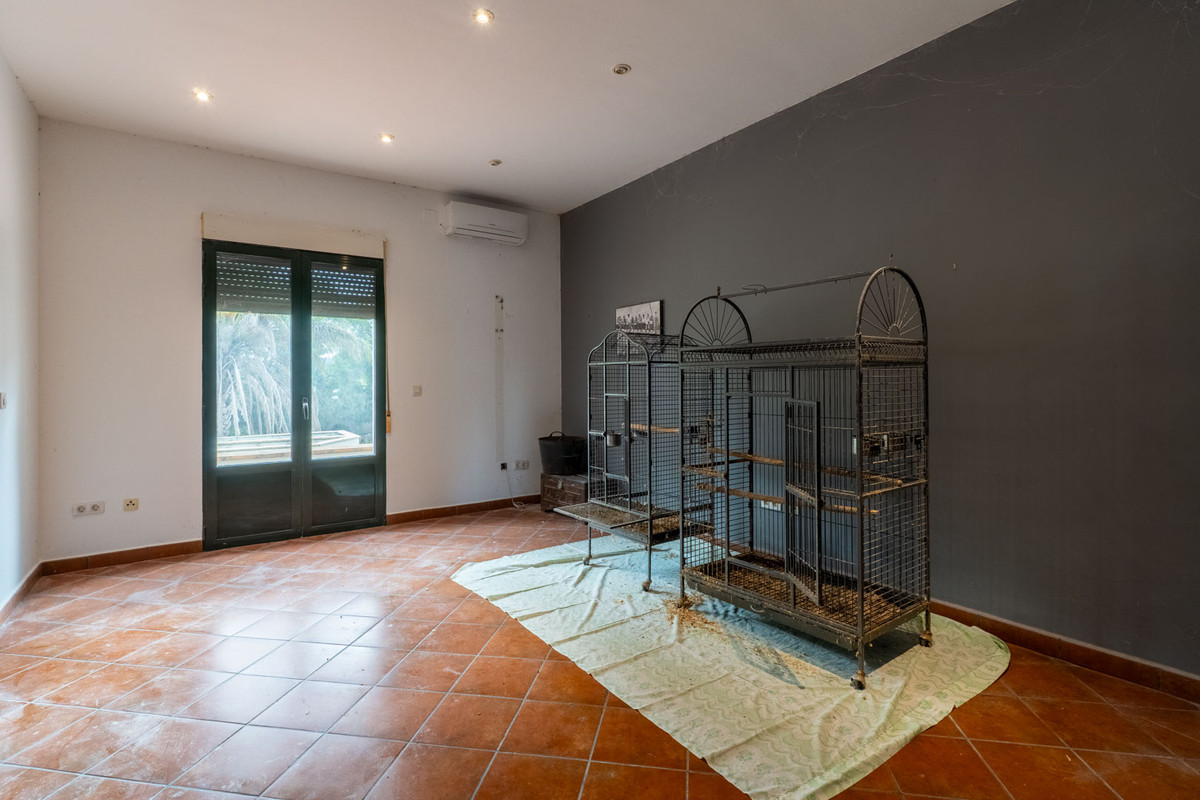 In the more private outdoor area, you will find a large swimming pool that reaches just over 3 meters in depth, inviting you to immerse yourself in silence and privacy, all surrounded by gardens and palm trees. For convenience, there is a full outdoor bathroom. Further back, there is a large installation of 30 state-of-the-art solar panels, guaranteeing energy self-sufficiency.