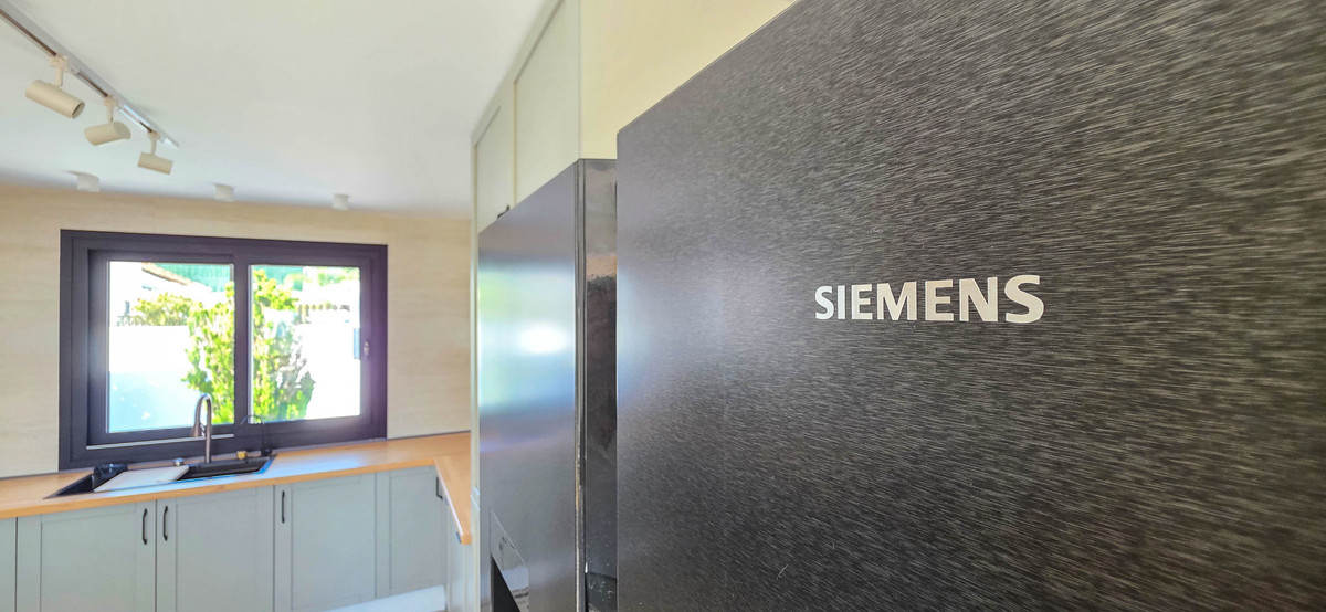 The villa features four spacious bedrooms and three bathrooms, each finished with quality materials and fittings. Plenty of storage space throughout the house. The bathrooms benefit from underfloor heating, while new, individually controlled air-conditioning units have been installed in every room to ensure year-round comfort. The kitchen is equipped with top-quality appliances, and the open-plan design allows natural light to flow throughout the home.