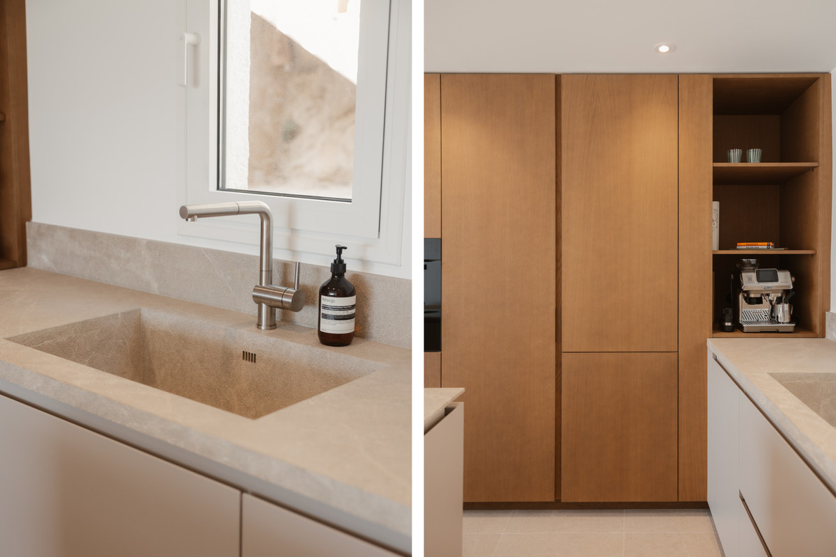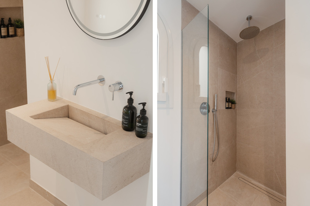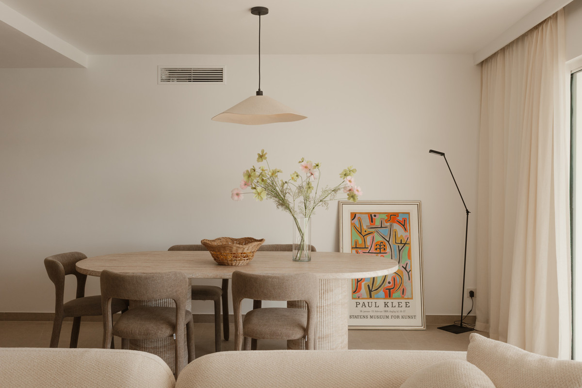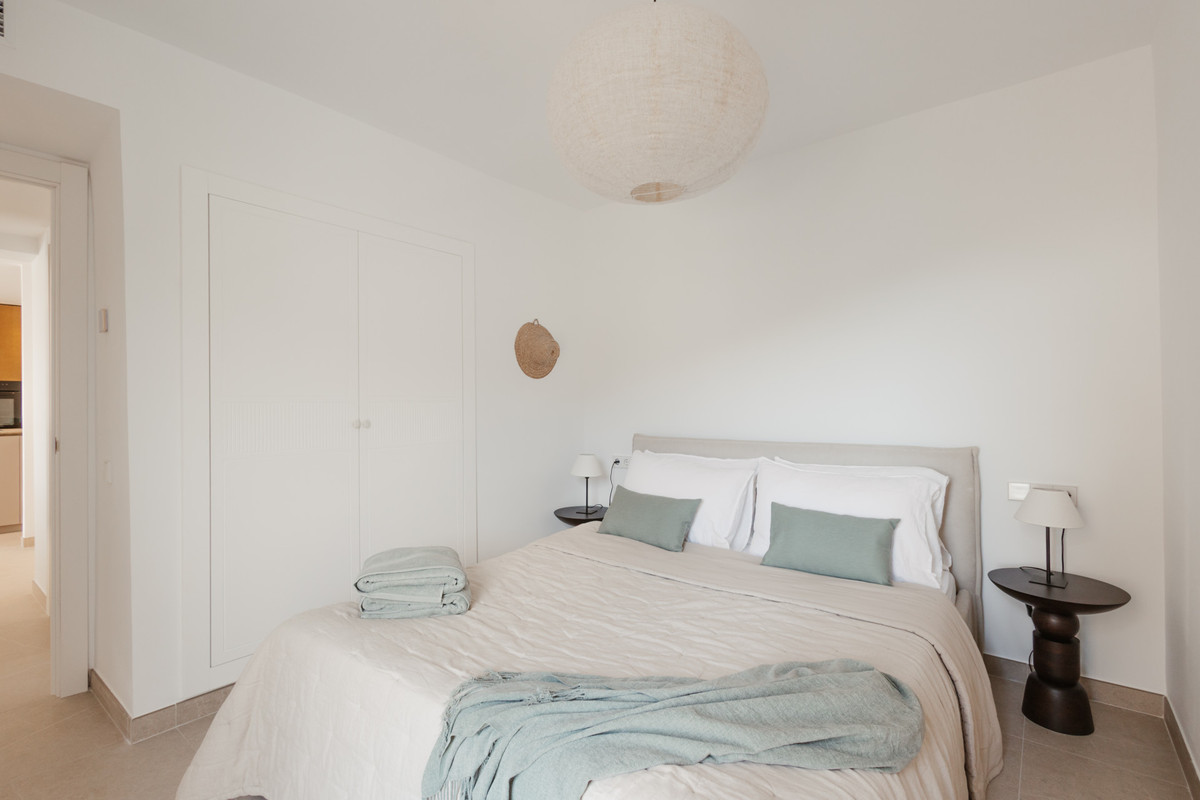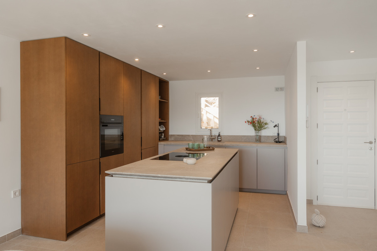 The apartment offers 2 spacious bedrooms and 2 modern bathrooms, including a luxurious en suite. Each room reflects a harmony of clean lines, natural materials, and soothing tones, echoing the beauty of the surrounding landscape. The bathrooms, adorned with elegant fixtures, transform everyday routines into moments of relaxation.
