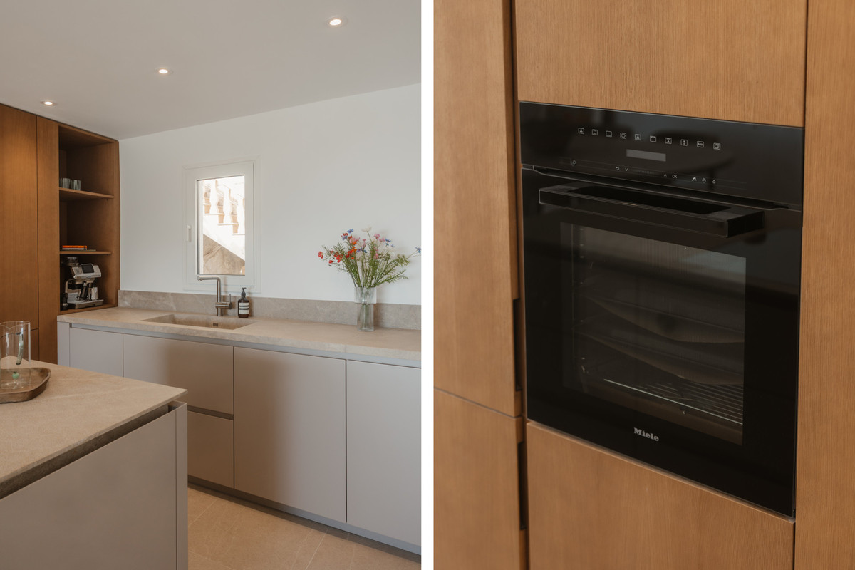Upon entering, a stylish entrance hall leads you into an expansive open-plan living and dining area, designed for both comfort and contemporary living. Floor-to-ceiling windows fill the space with natural light, creating a warm and inviting ambiance throughout the day. The exclusive Espacio kitchen is a culinary masterpiece, equipped with a Bora cooktop and premium Miele appliances — perfectly uniting design, technology, and function for a truly refined cooking experience.