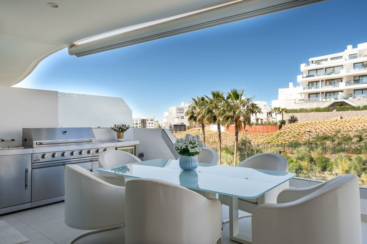 The open-plan living space includes a modern fully equipped kitchen. It flows out onto the generously sized terrace for an al fresco lifestyle. The impressive gated community includes landscaped gardens and swimming pools. This innovative apartment with 2 bedrooms and 2 bathrooms integrates home automation and aerothermal energy, ensuring energy efficiency. Room-specific floor heating in the entire apartment. It also includes two parking spaces and a storage room. The urbanization is located next to the Sports Club Reserva del Higueron with spa, gym, padel and tennis courts, café etc. Located in Higueron, between Benalmadena and Fuengirola.