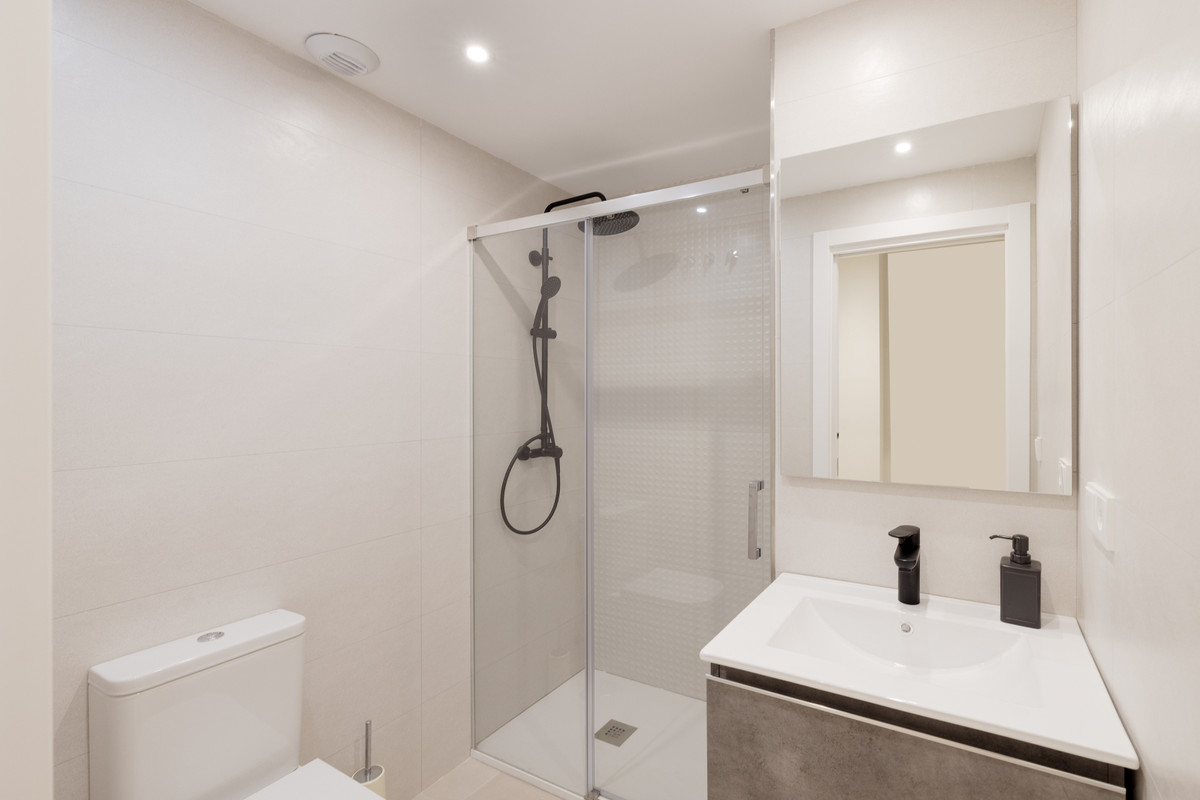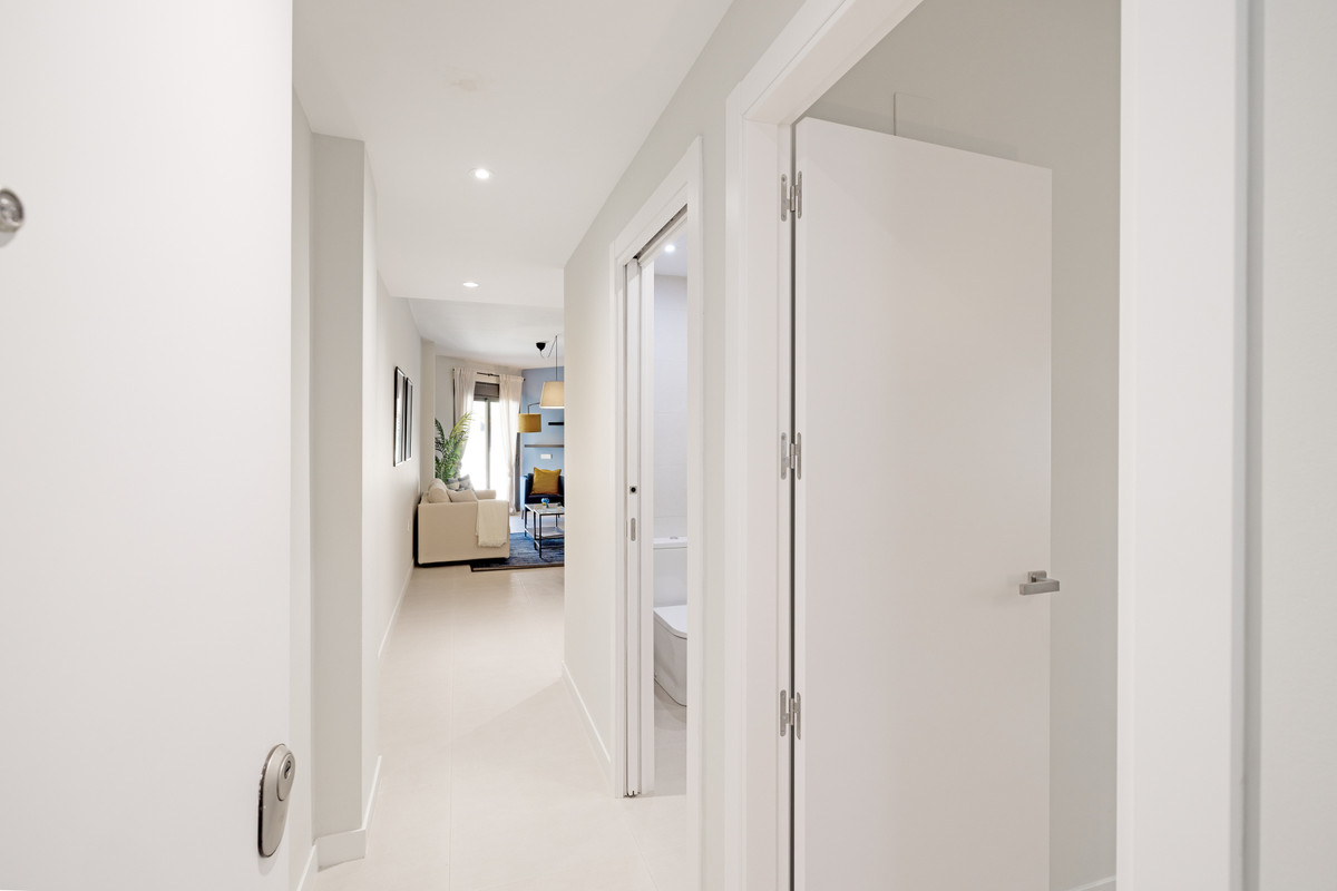 Materialer af højeste kvalitet, fuldt udstyrede køkkener, badeværelsesmøbler med spejle og glasafskærmninger i bruseområder.