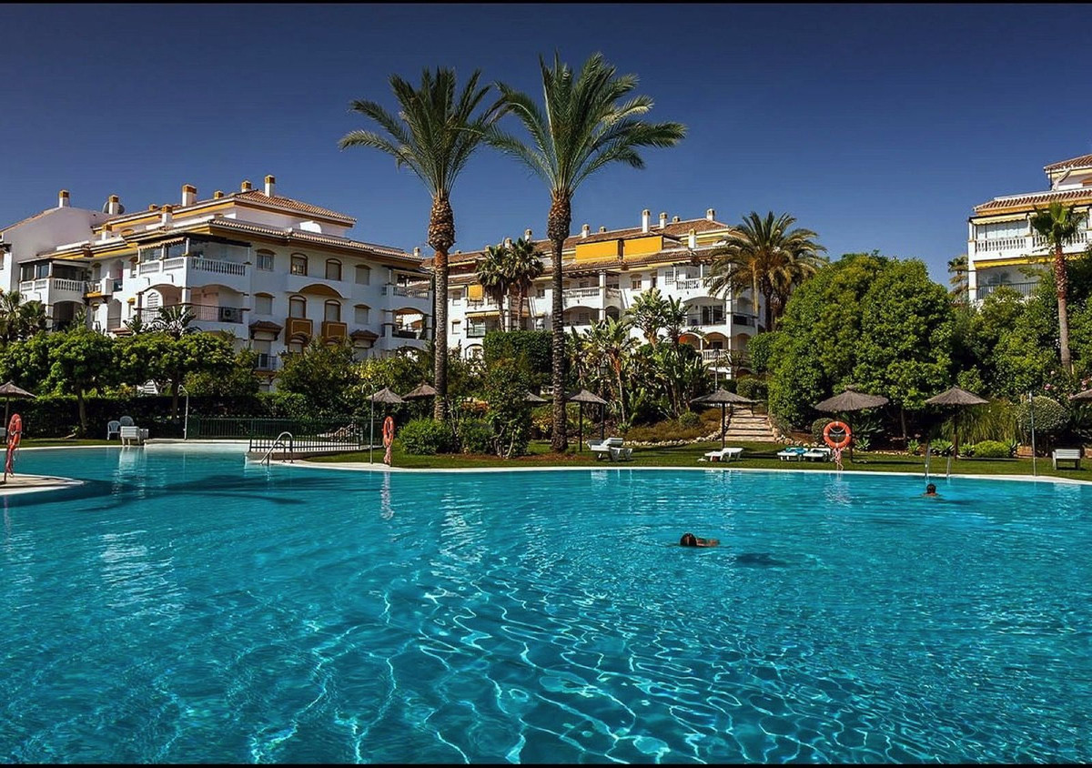 Nestled in the prestigious La Dama de Noche urbanisation within Marbella's upscale Nueva Andalucía district—often hailed as the 'Golf Valley' for its proximity to world-class courses like Los Naranjos and Aloha—this elegant apartment offers the epitome of resort-style living just a 10-15 minute stroll from the glamorous Puerto Banús marina, with its designer boutiques, fine dining, and vibrant nightlife. A mere 700 metres from pristine beaches and the sparkling Mediterranean Sea, this gated community provides an idyllic blend of tranquillity, luxury, and convenience, surrounded by lush tropical gardens and top-rated amenities. Ideal for those seeking a permanent residence, holiday home, or savvy investment in one of the Costa del Sol's most sought-after locales, where property values continue to appreciate amid high demand.