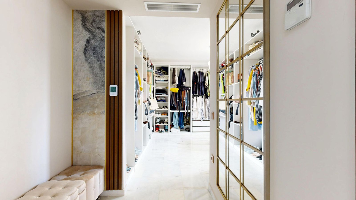 The master suite stands out for its spacious walk-in closet, en-suite bathroom, and private terrace facing southeast, offering pleasant views and exceptional brightness.