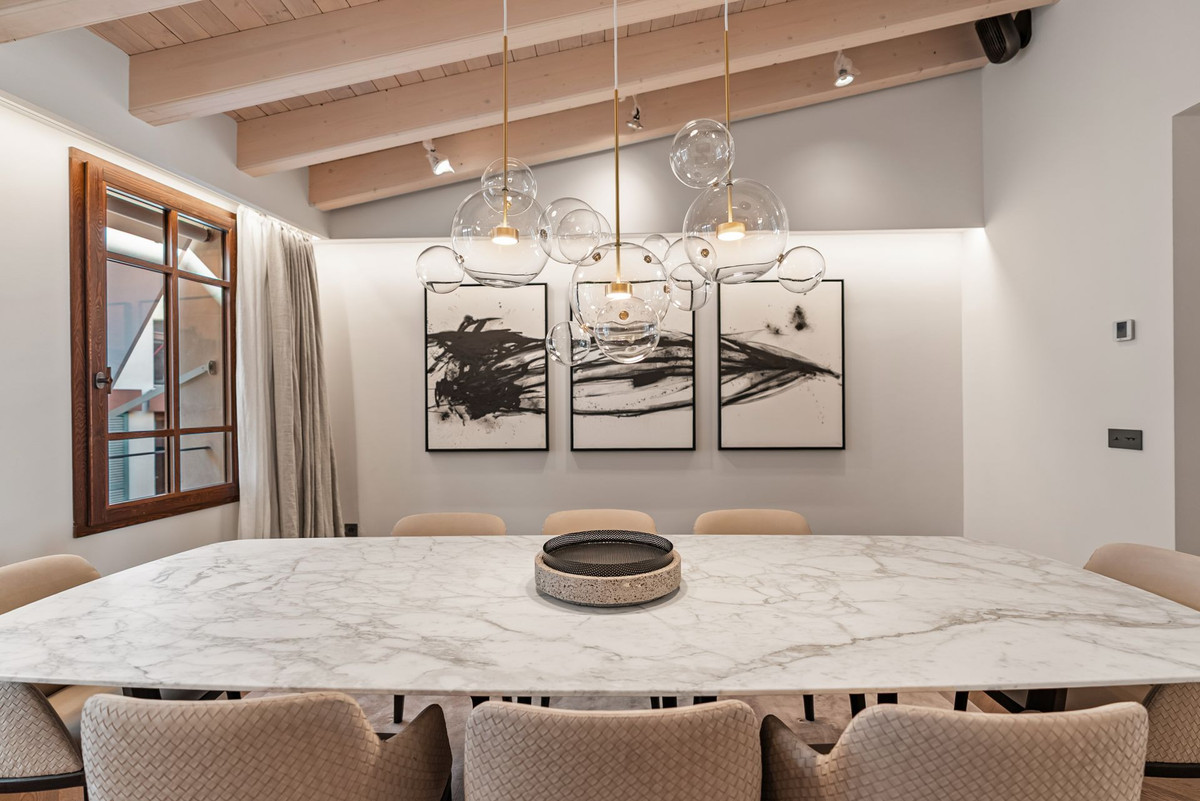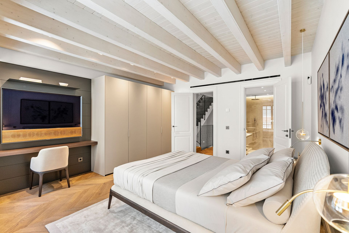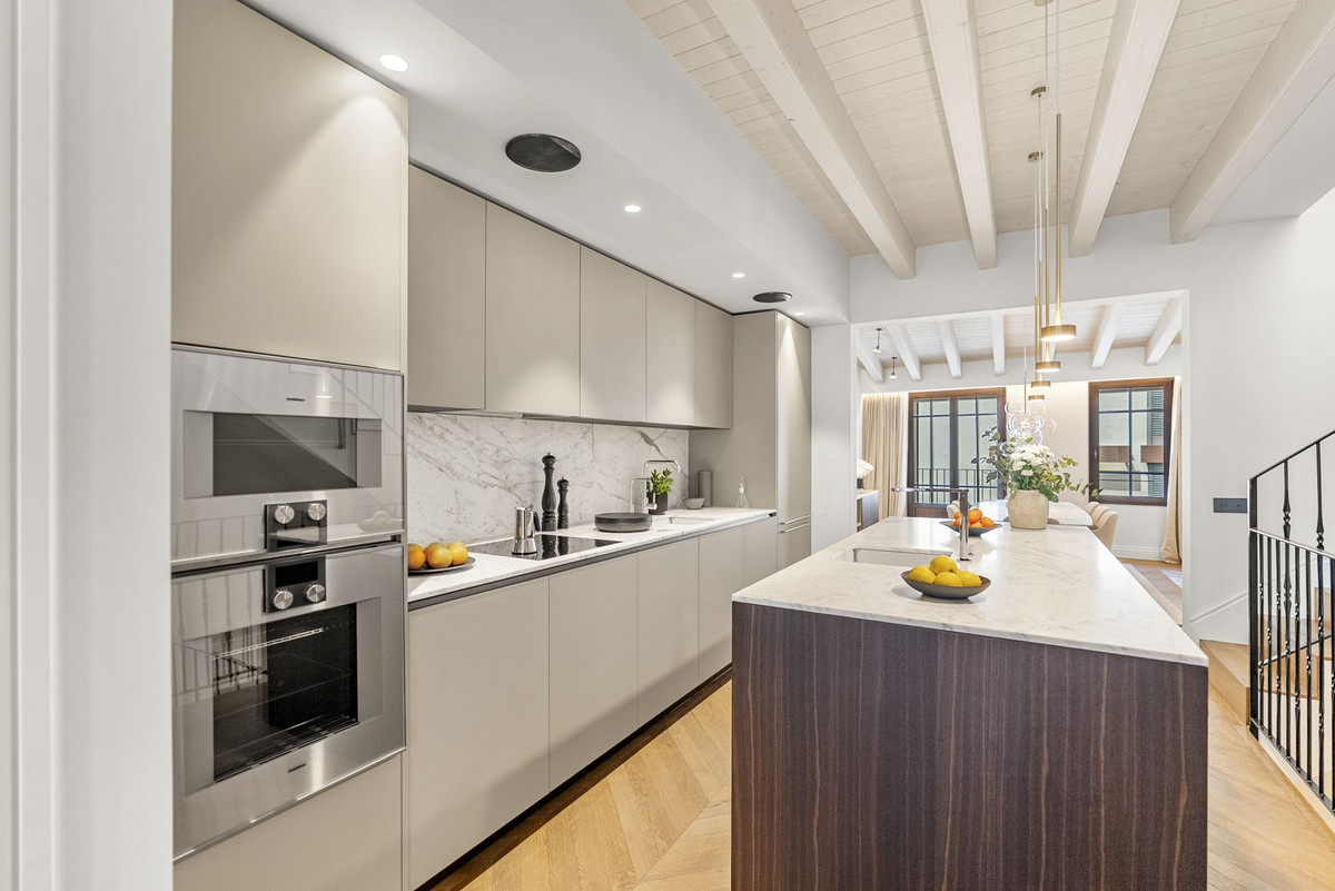 The property is also built for well-living. A heated rooftop pool makes swimming possible year-round, while an outdoor kitchen and wine cellar turn entertaining into an art. Poliform interiors and Gaggenau appliances add sophistication, and practical touches — private parking, an elevator to every floor, and advanced security — ensure comfort and ease.