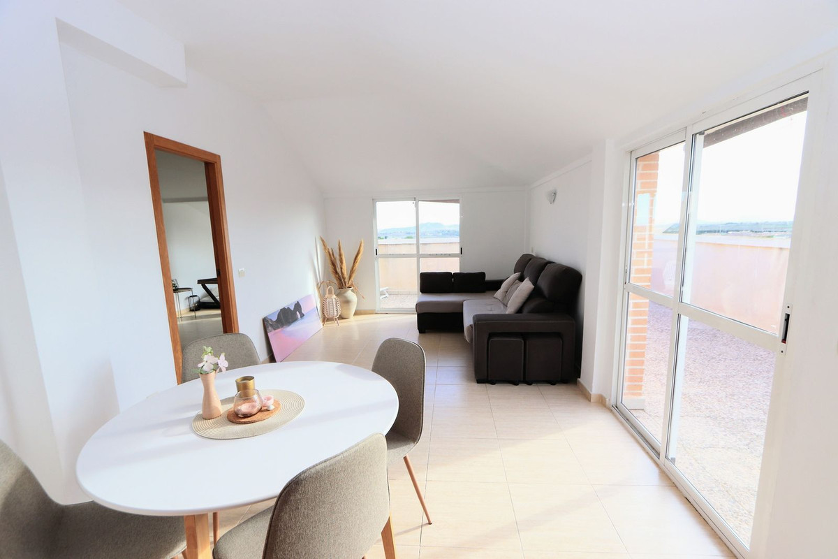 Take a look at this Fabulous Duplex Apartment located in a popular village of Sucina, Murcia, which is walking distance to all amenities such as bars, restaurants, supermarkets, doctors, dentist and pharmacy. The property consists of 3 bedrooms with wardrobes, 2 bathrooms, living/dining area and a fully fitted kitchen. The property benefits from juliet balcony from the bedroom and a sunny roof solarium with views over sucina village, air conditioning and a lift.