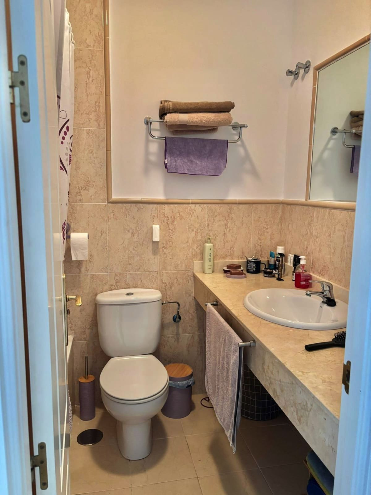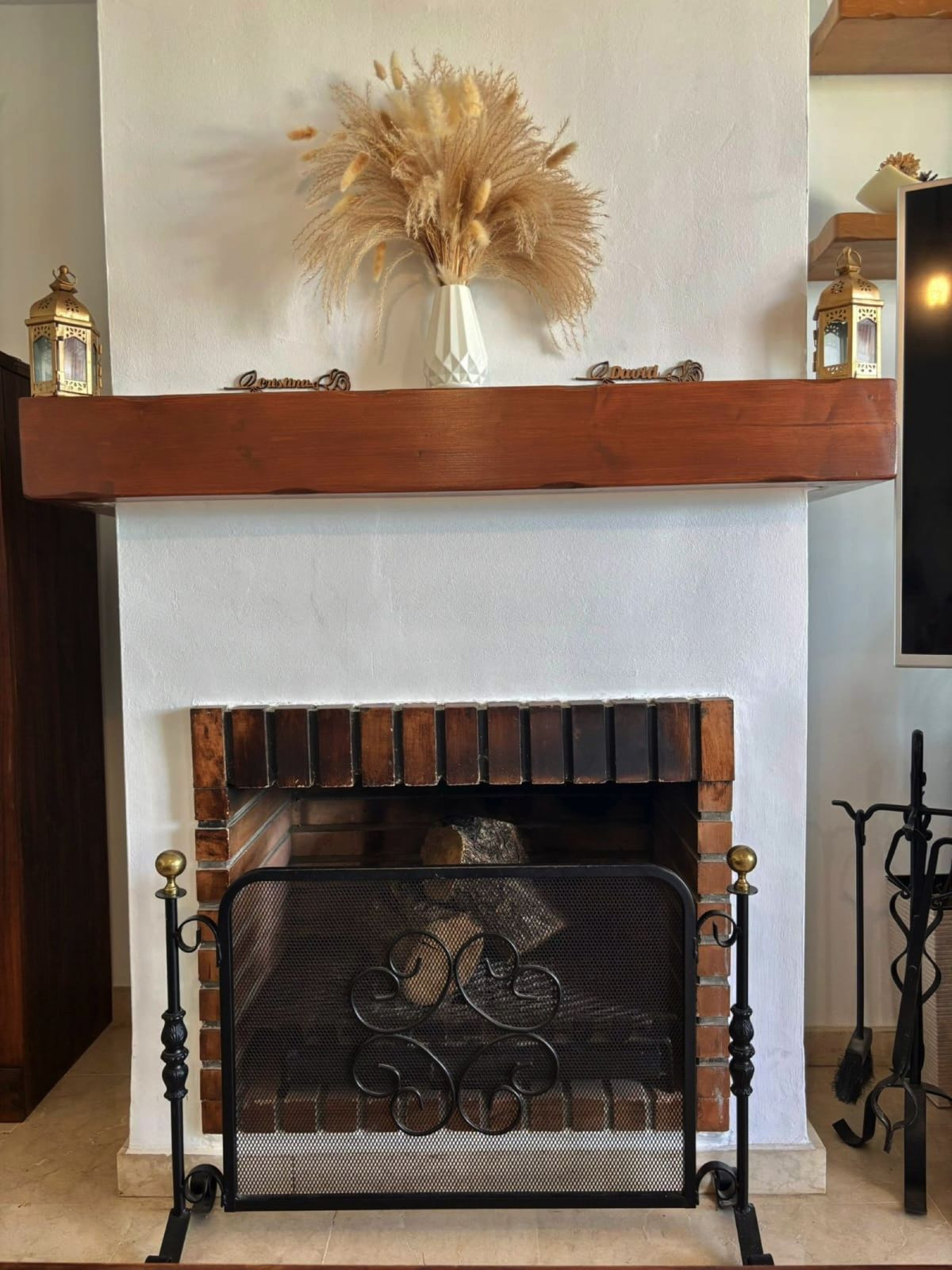 Thoughtfully arranged over three levels with flexible dual entry from the first or second floor, this 107 m² (89 m² usable) south-facing retreat is in superb second-hand condition, featuring marble flooring throughout and spectacular vistas. The first floor boasts two spacious bedrooms with fitted wardrobes, air conditioning, and en-suite bathrooms, both opening to a shared terrace that leads directly to the urbanisation's inviting swimming pools—ideal for leisurely swims. A wide hallway reveals a versatile third auxiliary room, perfect as a guest suite or home office. This level also includes a dedicated storage space connecting to a private garage with built-in storage solutions, plus an under-stairs cupboard for additional organisation. Ascend to the second floor, where an independent, fully equipped kitchen with ample storage awaits, alongside a bright living-dining room with air conditioning and a cosy fireplace, seamlessly flowing to a large terrace with awe-inspiring views—enhanced by awnings for year-round use and currently set up as a barbecue area. A spiral staircase ascends to a private rooftop solarium, offering endless potential as a chill-out zone. A guest cloakroom ensures visitors have convenience without accessing private areas.