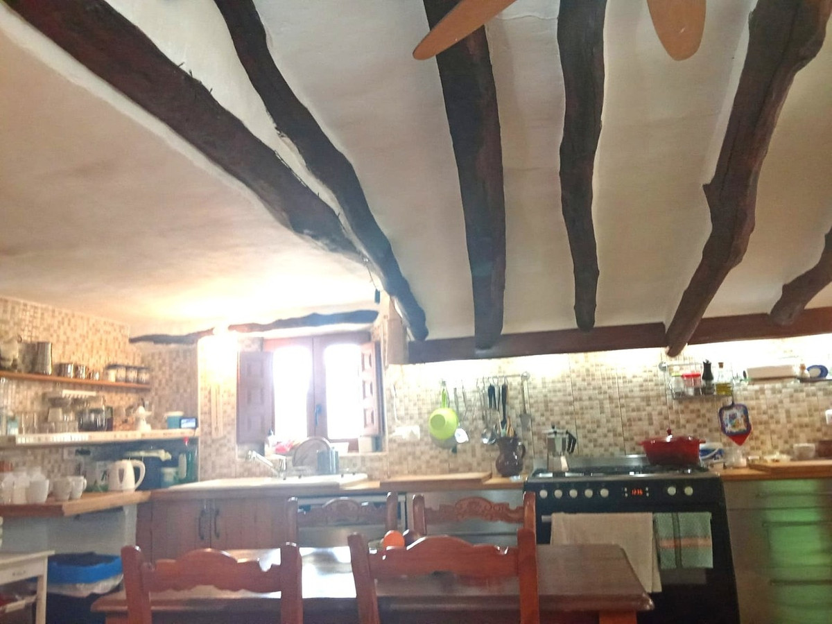Down a couple of steps in the entrance hall we enter the first lounge, with two double glazed windows and open wood burner. The ground floor has been fully restored to include feature wooden ceiling beams, wall mounted central heating, all rooms are spacious with high ceilings throughout. There is the second lounge off to the right with double glazed window to the east and log burner. In-between these rooms there is a feature high window with shelf. Heading to the side of this lounge we come to the mountain view lounge/diner. This room has been well planned to fully maximise the stunning views- fitted with wrap around windows with fly screens and sliding patio doors to the sunrise terraces and swimming pool.