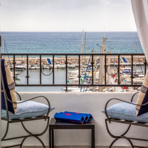 Welcome to Marbella.Imagine waking up every morning with the gentle Mediterranean breeze caressing your face and the promise of a new day in one of the most exclusive enclaves in the world.This luxurious duplex, located in the vibrant heart of Puerto Banús, is not just a property: it is a haven of elegance, serenity and style.From the moment you step inside, you will be dazzled by the exquisite décor, where every detail has been carefully chosen to create a unique visual and sensory experience.The spacious and bright rooms open naturally to the outside, allowing the southern light to flood every corner.On the main floor, the fully equipped separate kitchen is an ideal space for both enjoying fine dining and sharing special moments.Adjacent to it, the living room offers an atmosphere of absolute comfort, perfect for relaxing after a day enjoying the charms of Marbella.On this same level, two bedrooms guarantee rest and privacy:• A master suite with a king-size bed, private bathroom and a cosy glazed balcony where silence and calm reign supreme.• A second bedroom with two single beds and a full bathroom, designed for the comfort of family or guests.Climbing the elegant staircase, you discover the true treasure of the property:a spacious master suite with direct access to the upper terrace.From there, the sea views are a changing spectacle that accompanies every sunrise and every sunset.