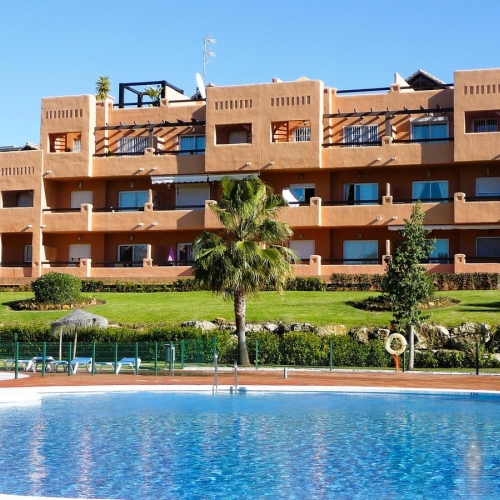 Located just 5 minutes from Estepona, this beautifully presented 2-bedroom, 2-bathroom penthouse offers the perfect combination of comfort, style, and panoramic views. Built in 2006, the apartment features marble flooring throughout and a bright, spacious lounge and dining area leading onto a west-facing terrace—ideal for enjoying the evening sun and stunning sea views. The fully fitted kitchen comes equipped with modern appliances, while the master bedroom includes an en-suite bathroom and access to the terrace. A second double bedroom and guest bathroom provide ample space for family or guests. Upstairs, a private solarium of approximately 70 m² offers breathtaking panoramic views across the coast and surrounding countryside, perfect for relaxing or entertaining. Additional features include air conditioning (hot & cold), underground parking, a storage room, and access to beautifully maintained communal gardens and swimming pool. This penthouse is ideal as a permanent residence, holiday home, or investment property within a secure and well-regarded development close to golf courses, beaches, and all amenities.