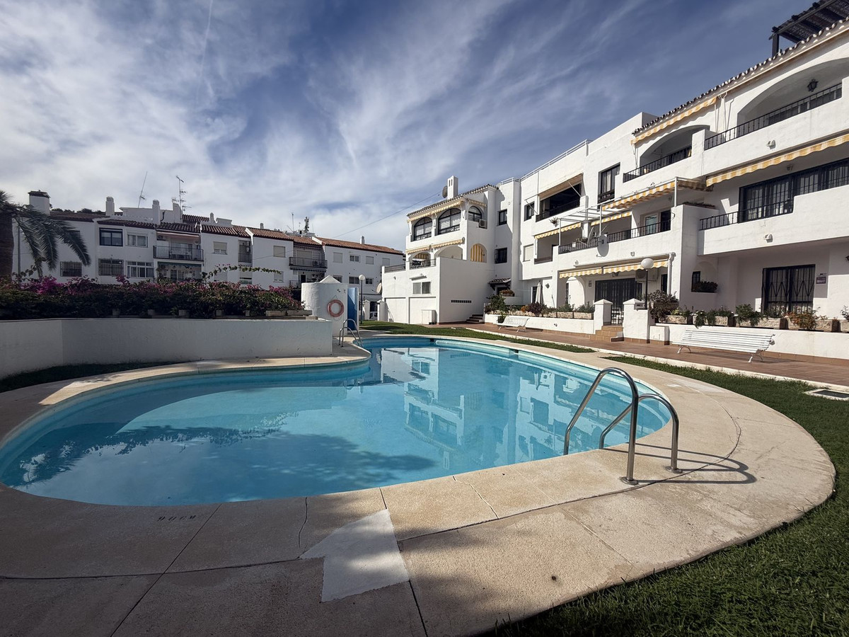 Indendørs har lejligheden en varm og hyggelig atmosfære med rummelige og komfortable værelser. Den er en del af et lille, velholdt fællesskab med en smuk fælleshave og swimmingpool.