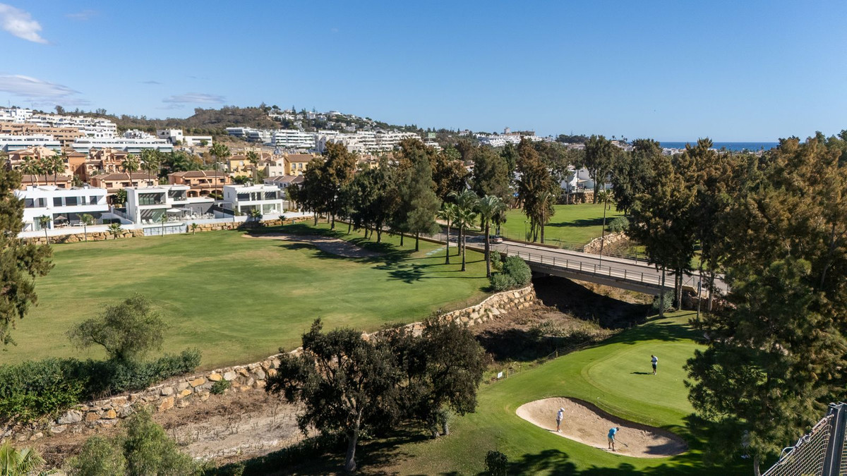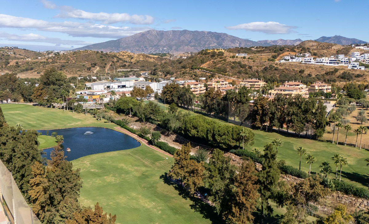 Welcome to this beautiful duplex penthouse distributed over two levels, located in the popular and well-maintained Navigolf complex in La Cala de Mijas.