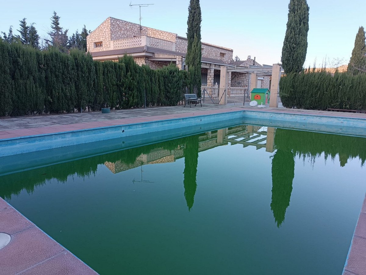 Elegant Stone Villa with Private Pine Forest and Pool Near Yecla Discover this impressive villa near Yecla, just 2 km from town with excellent paved access. Spacious and bright, built with exquisite natural quarry stone and superior insulation, this property combines traditional materials with solid construction and high-quality finishes. The house features:Ground floor (132 m²) with 2 living rooms (one with a fireplace, BBQ and a toilet), 4 bedrooms, 2 bathrooms, a fully equipped independent kitchen, pantry, and laundry room.Attic (116 m²), currently used as storage, could be easily converted into a separate apartment, guest suite, or creative studio.Garage (48 m²) with ample space for several vehicles or a workshop.Swimming Pool (39 m²) with a filtration system, perfectly positioned beside the house and front porch - ideal for outdoor entertaining and summer relaxation.A little guest house with a bathroom and a space prepared for a jacuzziExtras: Oil-fired central heating, double Venetian-style metal window system for comfort and efficiency, connection to mains electricity and irrigation waterThe property is set on a fully fenced 5,600 m² plot, which is divided into two areas:A beautifully landscaped garden, offering full privacy and views over the pool, andA separate enclosed pine forest, your own natural sanctuary of peace and shade, ideal for animals.This exceptional property offers complete privacy, solid craftsmanship, and a lot of potential, all within 2 km from the lively town, and for a bargain price!About the area: Yecla is a charming and historic town of app. 35000 inhabitants, located in the region of Murcia. It is renowned for its award-winning wines, historical landmarks, and vibrant local culture. The surrounding natural landscapes of scenic mountains, vineyards and almond groves provide opportunities for outdoor activities, while the town itself offers all necessary services, including hospital, schools, shops, restaurants, and other services. With a friendly local community, lively markets, excellent gastronomy, and easy access to nature, Yecla is an ideal location for those seeking authentic Spanish lifestyle - just about an hour from the coast and Alicante airport.About us: We have a large portfolio of properties in the Costa Blanca and Costa Calida areas, specialising in country properties, villas, fincas, building plots and design and build options in the Alicante and Murcia regions with a particular emphasis on Elda, Monovar, Pinoso, Sax, Villena, Aspe, Fortuna, Albacete and many more surrounding areas. We have been established since 2004 and have decades of experience between the team which we bring to bear to help you find and secure your new dream home. We help you every step of the way to make sure your purchase in Spain is safe and hassle free. We are not here to sell you a property, we are here to help you realise your dream and find what is right for you. With us you are in the safest hands. Contact us now to have a no obligation chat about how you too can realise your dreams.