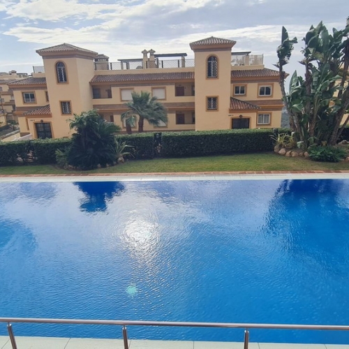 Spacious and renovated two bedroom apartment with sea views in in the well known complex las Palmeras de Calahonda!