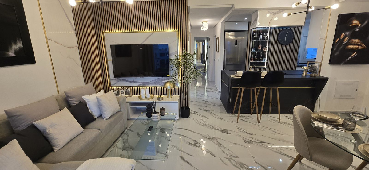 The apartment comprises an open-plan living room with media wall and sliding doors opening to a West facing terrace overlooking the pool. The kitchen is new and includes all the appliances. There are two double bedrooms with fitted wardrobes, ceiling fans and juliet balconies, plus a re-fitted bathroom.