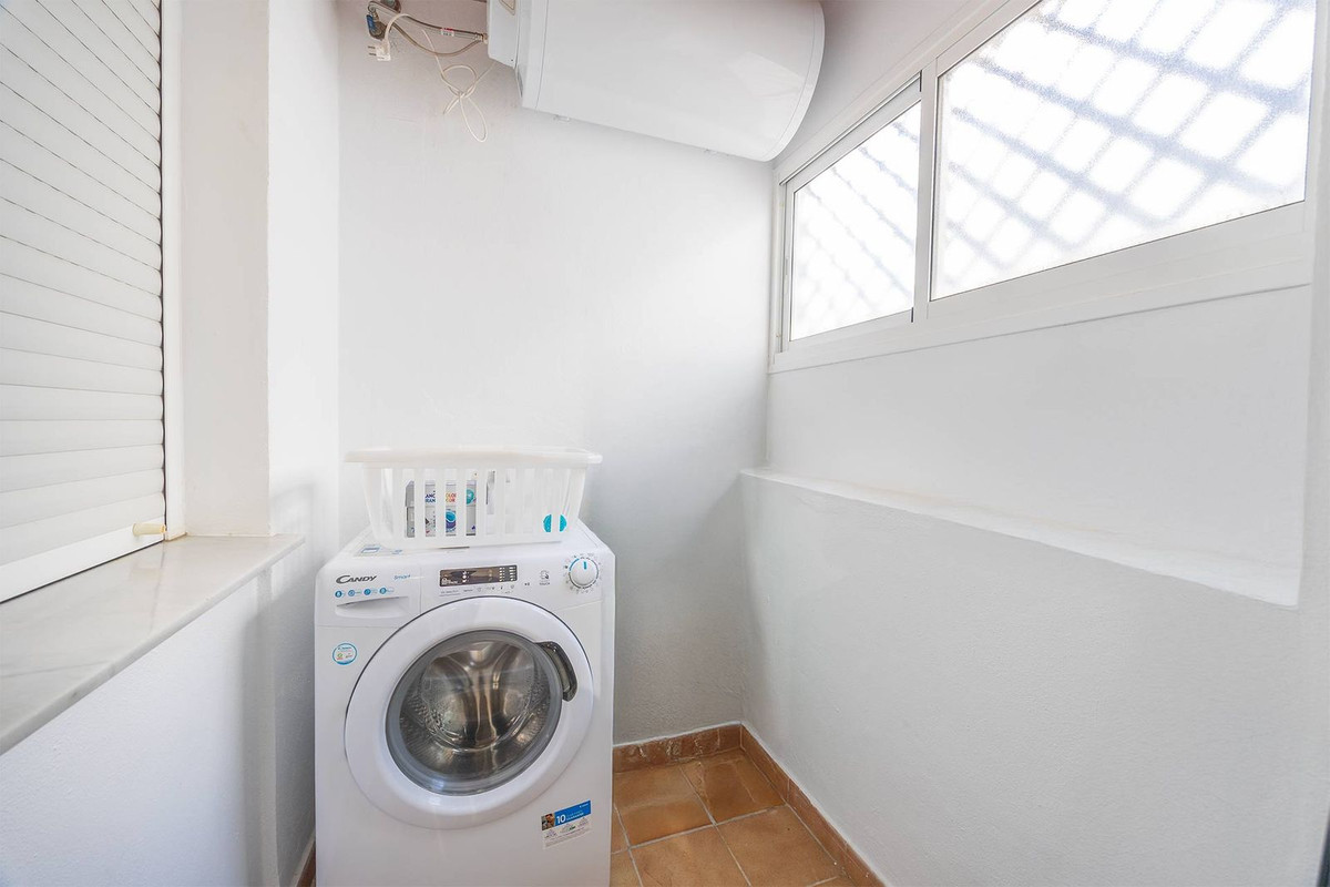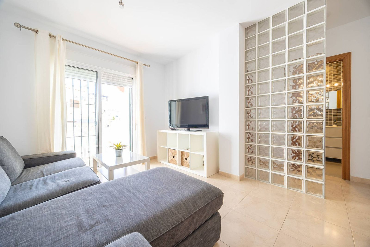 Indflytningsklar 2-værelses bolig med 1 badeværelse i Chimeneas-området i Nerja. Lys stue/alrum, fuldt udstyret køkken og separat bryggers/vaskerum. Sælges fuldt møbleret. Fælles pool.