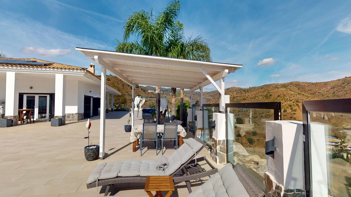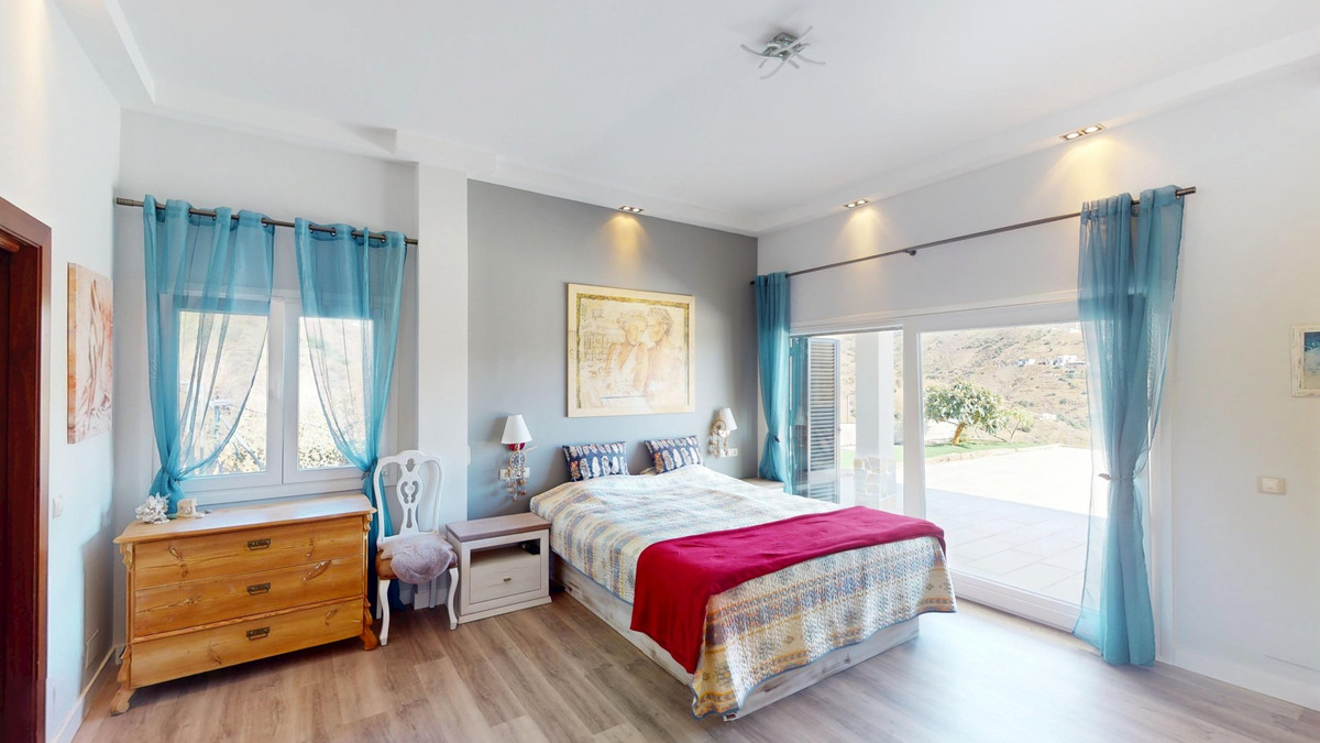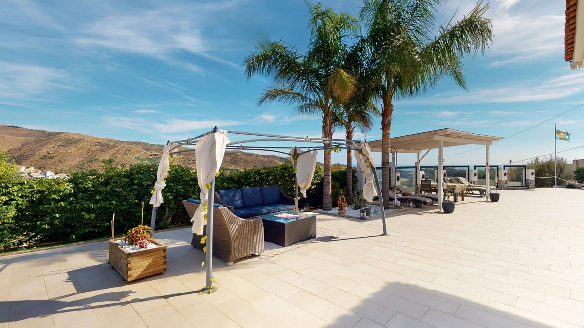 Denne charmerende villa i Moclinejo kombinerer komfort, rummelighed og fantastisk udsigt over havet og de omkringliggende bjerge. Beliggende på en stor grund med en smuk have, tilbyder det et fredeligt miljø til fuldt ud at nyde naturen og middelhavsklimaet. Udenfor finder vi en smuk swimmingpool, et udendørs badeværelse og et sommerkøkken, ideelt til at tilbringe hyggelige øjeblikke udendørs med familie og venner. Indvendigt skiller villaen sig ud for sit rummelige layout: et stort fuldt udstyret uafhængigt køkken, en lys og hyggelig stue og et komplet badeværelse. Et andet værelse bruges i dag som kontor, men kan nemt omdannes til et ekstra soveværelse. Soveområdet har to soveværelser, endnu et badeværelse med badekar og bruser, og et soveværelse med direkte adgang til terrassen og haven, samt et stort påklædningsværelse. Ejendommen tilbyder nem adgang, parkeringsplads på grunden og alle væsentlige faciliteter inden for gåafstand. Takket være den fremragende orientering kan du nyde naturligt lys hele dagen og smukke solnedgange fra hovedterrassen. Derudover er dens beliggenhed uovertruffen: stranden ligger kun 15 minutter væk, motorvej A7 er 10 minutter væk, og Malaga lufthavn ligger cirka 30 minutter væk, hvilket garanterer en fremragende forbindelse til hele Costa del Sol. Et ideelt hjem for dem, der leder efter charme, rummelige udendørsområder og spektakulær udsigt i en af de smukkeste regioner i Axarquia. Vi vil med glæde introducere dig til denne drømmeejendom snart, enten personligt eller via en virtuel rundvisning. Fordi denne verden er unik, ligesom vores Axarquía. I Andalusien. På Costa del Sol. Her, på livets solside.