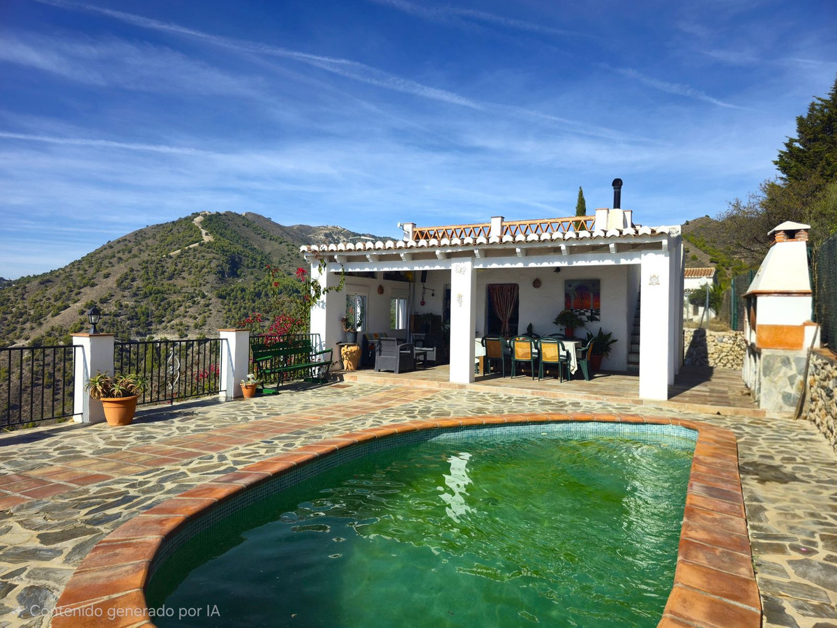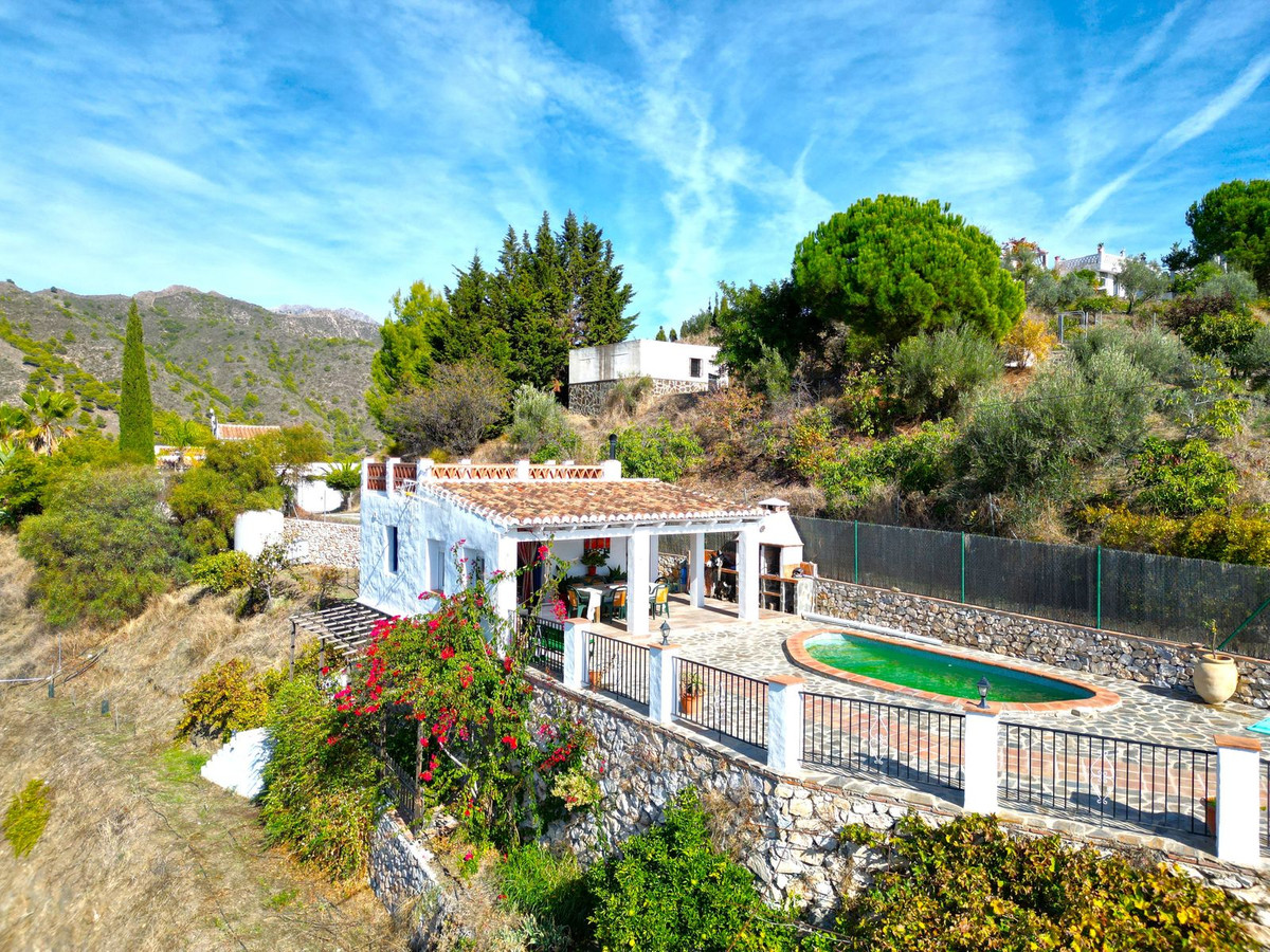 Beliggende kun en kort køretur fra den hvide landsby Frigiliana og den maleriske landsby Acebuchal, har ejendommen en privilegeret beliggenhed med åben udsigt over bjergene, oliventræerne og de naturlige landskaber i Axarquía-regionen. Fra første øjeblik føles huset varmt og indbydende - hvidkalkede vægge, en hyggelig pejs til køligere dage, en skyggefuld veranda til sommeraftener og en pool, der inviterer dig til at slappe af eller nyde en svømmetur under stjernerne.
