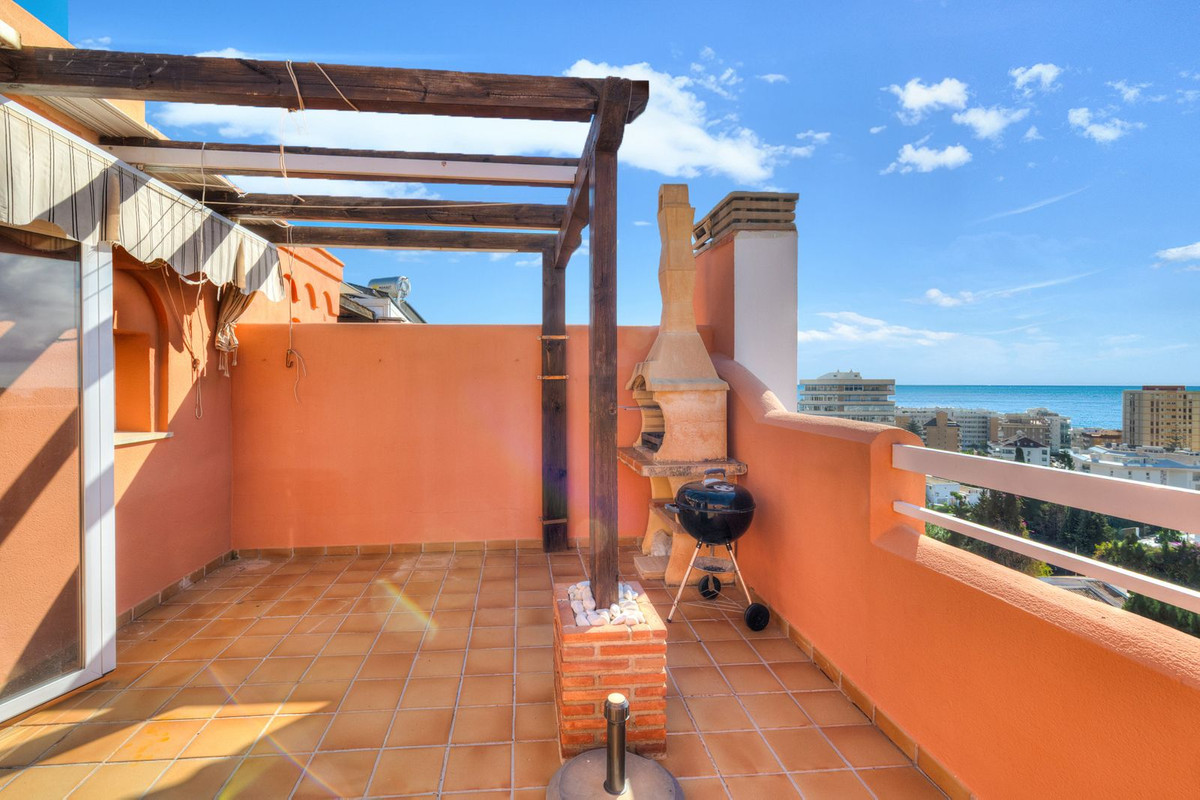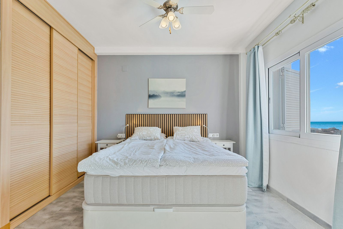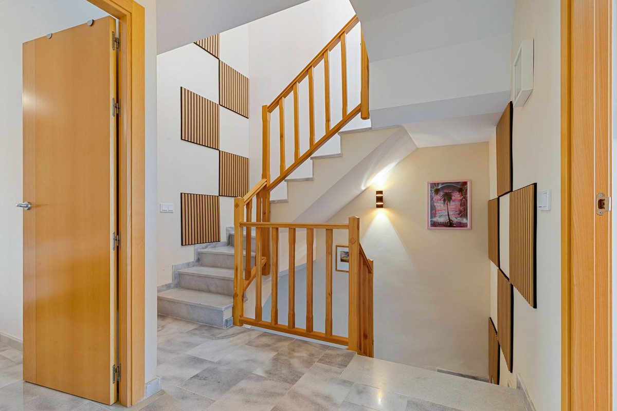 Upstairs there are 3 bedrooms with built-in wardrobes and 2 bathrooms with shower, one of hem en-suite. Another floor up there is a fourth bedroom with toilet and bathroom vanity. This was previously an open terrace that the previous owner built in. Part of the terrace is still open and has space for a barbecue and dining table. From here you also have views of the sea and the surroundings.