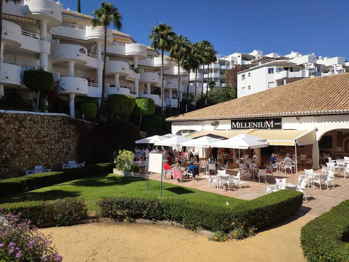 Denne duplex-penthouse har en fremragende beliggenhed mellem Fuengirola og Marbella, hvilket giver nem adgang til begge byer. Den byder på smuk udsigt over havet og bjergene, hvilket skaber en betagende baggrund for hverdagslivet. Kun et minuts gang fra to populære restauranter, Miel y Nata og The Family, samt den livlige Millennium Bar & Natklub. Derudover er der kun få minutter til kendte stranddestinationer såsom Max Beach (4 km), Cabopino Strand (2,5 km) og Marbella centrum (9 minutters kørsel).