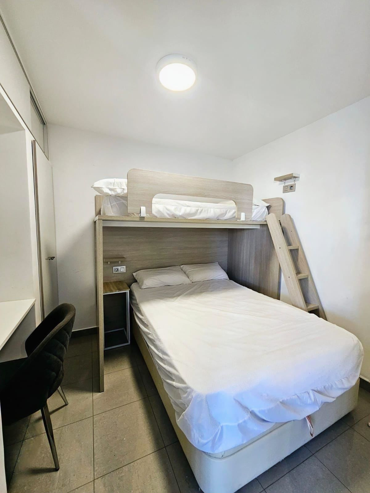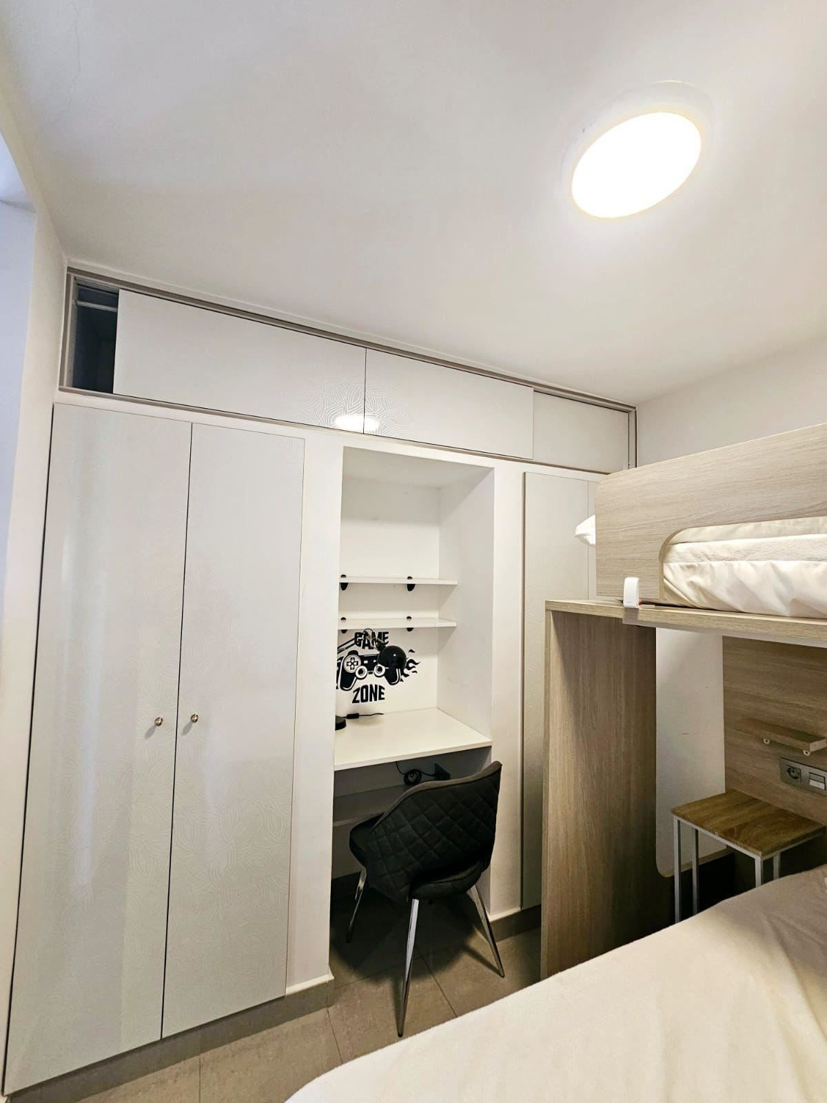 The apartment is located high up in the building, on the seventh floor, which provides a wonderful light and unobstructed view of the surroundings. The eastern orientation offers morning sun and creates a warm and pleasant atmosphere from the first hours of the day. The home is smartly planned with a spacious bedroom, a fresh bathroom and an airy living room, and is equipped with air conditioning to provide comfort all year round.