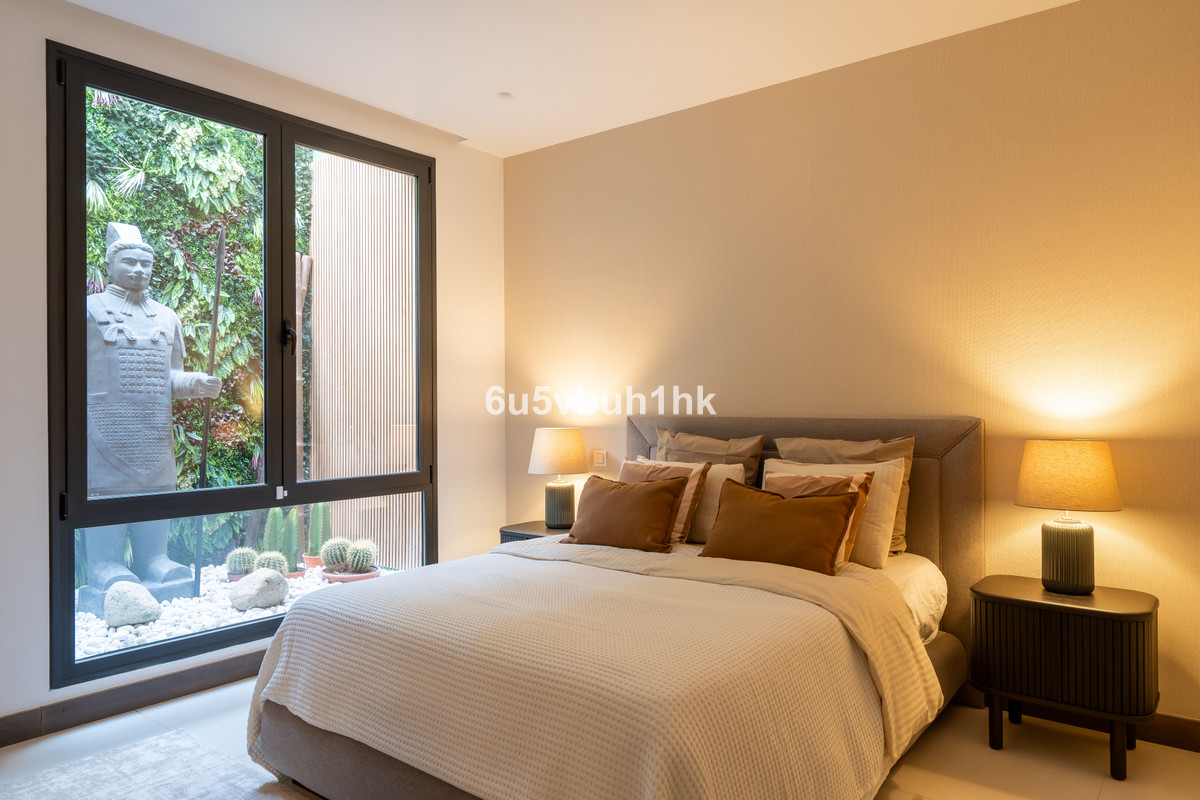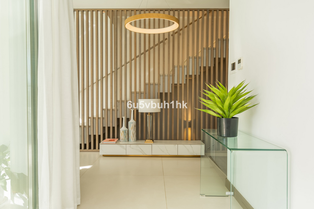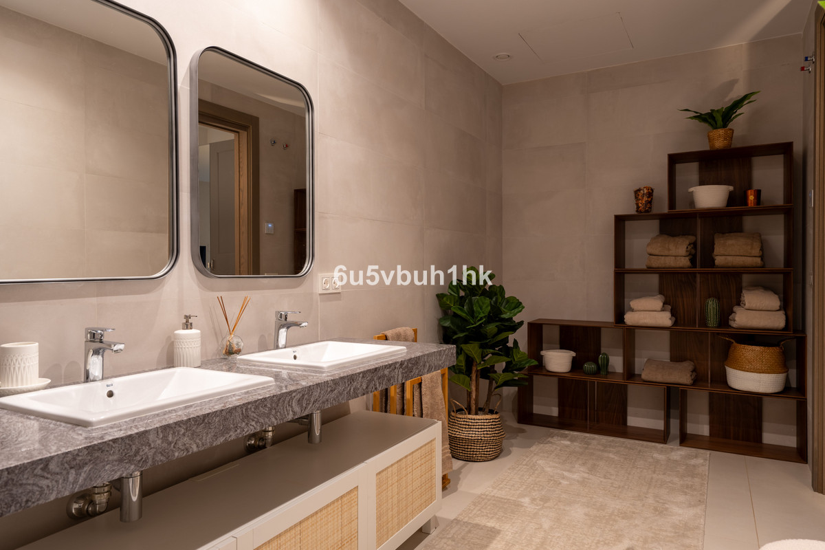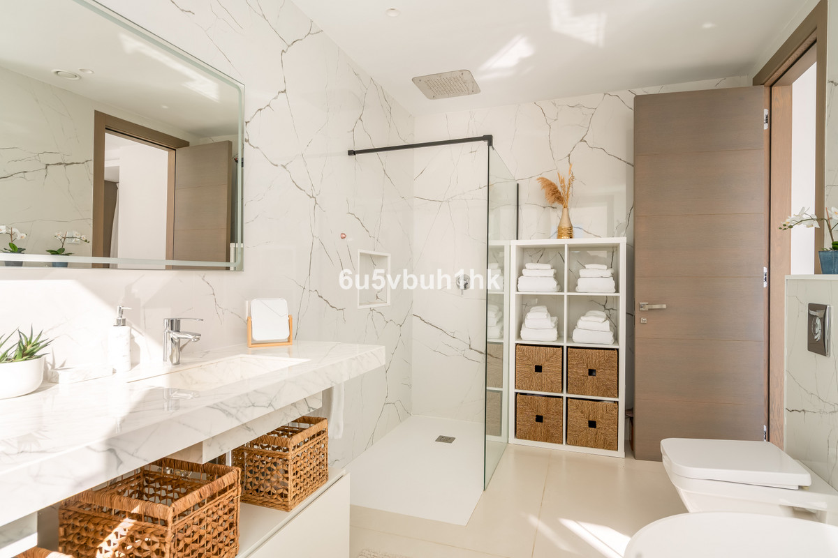 Upstairs, you'll find two elegant bedroom suites, including a spectacular master bedroom with a luxurious en-suite bathroom, generous space, and its own private terrace. The floor also offers a wrap-around terrace with panoramic sea views, making it the perfect spot to enjoy Marbella's golden sunrises.
