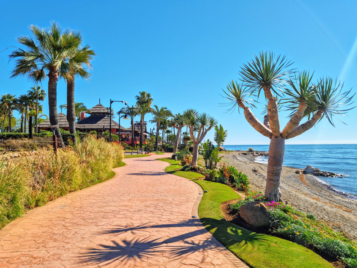 Renovated apartments with 3 bedrooms, living room, kitchen, two terraces, with all amenities in Las Salinas. The apartments are located 200 meters from the beach, 8 km from Estepona, 18 km from Marbella and 34 km from Ronda. It offers 2 shared outdoor pools, 1 indoor pool, sauna, gym and free Wi-Fi. The master bedroom has a private bathroom, King-size bed, large TV, large closet and private access to the terrace. The second bedroom has two separate beds , bedside table, closet, large TV and access to a small terrace. The third bedroom has two separate beds, bedside table, closet, large TV and access to a small terrace. The second bathroom with shower and toilet has a separate entrance from the shared hallway. The kitchen is equipped with a built-in dishwasher, refrigerator, hob, oven, microwave, extractor hood, kettle, toaster and coffee maker. The living room has a large flat screen TV, a large dining table for 6 people, a large corner sofa and access to a large sun terrace. There is also a laundry room with washer and dryer, ironing board and iron.The apartment has dedicated parking space in the undergounf parking and a storage room. Apartment will be sold fully furnished.