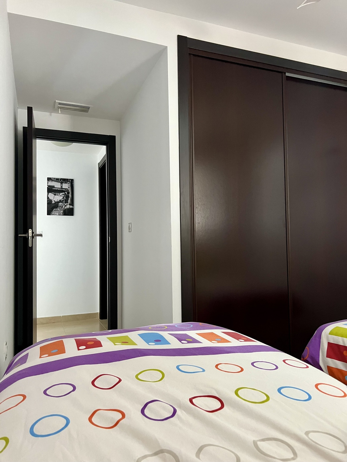 The apartment is bright and well laid out with an open plan living/dining room and fully equipped kitchen, two bedroom with fitted wardrobes, two bathrooms, and a sunny balcony. There is an intercom system to the street, air conditioning (hot/cold) throughout the property and the community is gated with attractive gardens and large impressive communal garden and swimming pool. Allocated parking space and storage room in the garage is also included in the price.