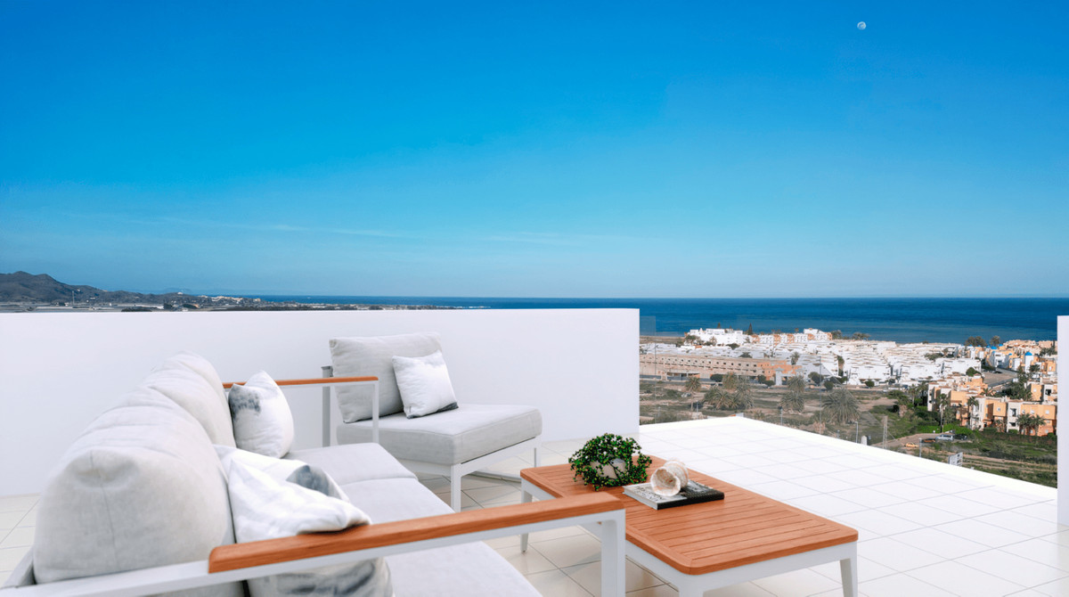 Dette nye projekt ligger i en privilegeret beliggenhed på en bakke med udsigt over Middelhavet. Alle boliger har rummelige terrasser med spektakulær udsigt mod øst, hvor man kan nyde betagende solopgange. Kun 5 minutters gang væk finder du over 7 km naturlige sandstrande. På blot 10 minutter kan du nyde et bredt udvalg af restauranter, barer, supermarkeder, butikker og sportsområder – perfekt til hyggelige eftermiddage med familie og venner. For de små ligger Almerías største vandpark kun 10 minutters gang væk. Omgivet af charmerende byer som Mojácar og Vera, hvor højhastighedstoget AVE snart vil ankomme og forbinde området med den spanske hovedstad.