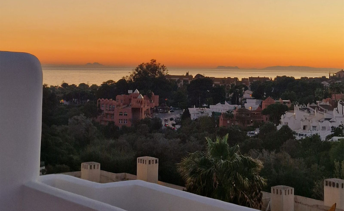 Dette er et fantastisk dobbelthus beliggende i et huskompleks i Cabopino, Artola-området ved Cabopino Golf, kun tre minutters kørsel fra Cabopino Marina og stranden. Selve huset er i tre etager med en privat have i underetagen, en terrasse i mellemetagen og den øverste etage, der føles som en penthouse med en endnu større terrasse og endnu bedre udsigt over havet og kysten. Ejendommen har en velbygget, moderne atmosfære med beige marmor overalt. Komplekset har en fælles pool. Cabopino har en topbeliggenhed i det østlige Marbella med nogle af de bedste strande på Costa del Sol.