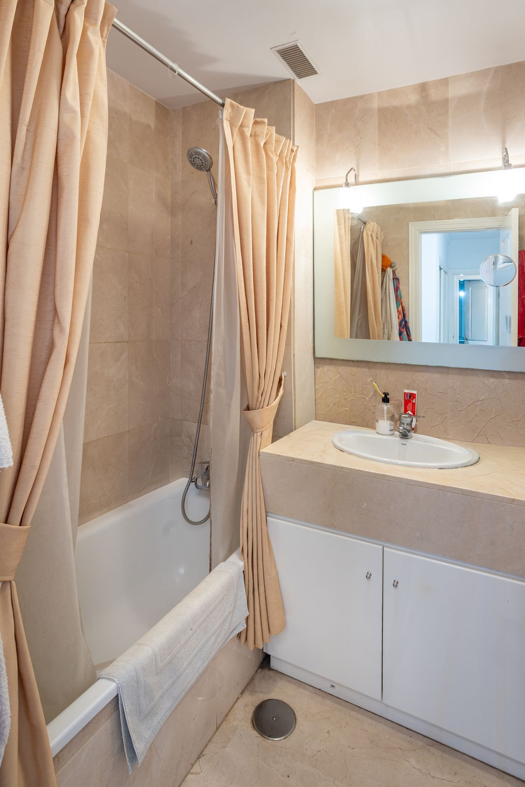 The property is in good condition, with 3 bedrooms, 3 bathrooms, 3 open terraces, a fully equipped and furnished kitchen, and air conditioning in all rooms.