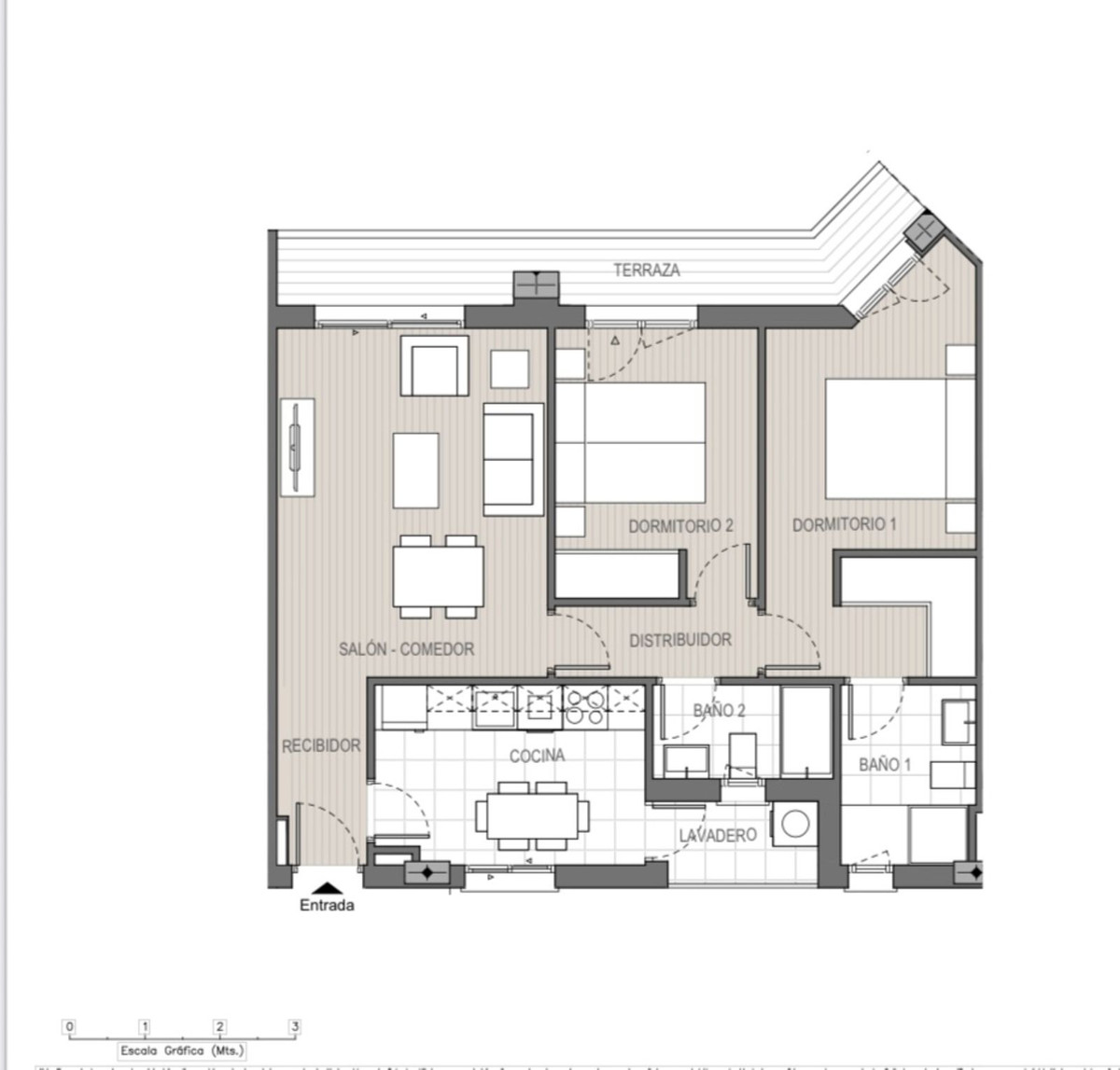 2 Soveværelser, 2 Badeværelser, Bebygget areal 86 m², Terrasse 14 m².