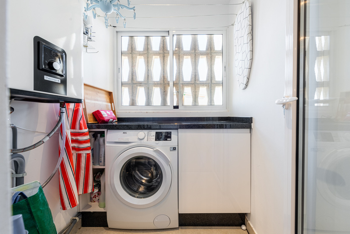 Straight ahead is the spacious and open living area with stunning views over the southwest part of Fuengirola and the sea.