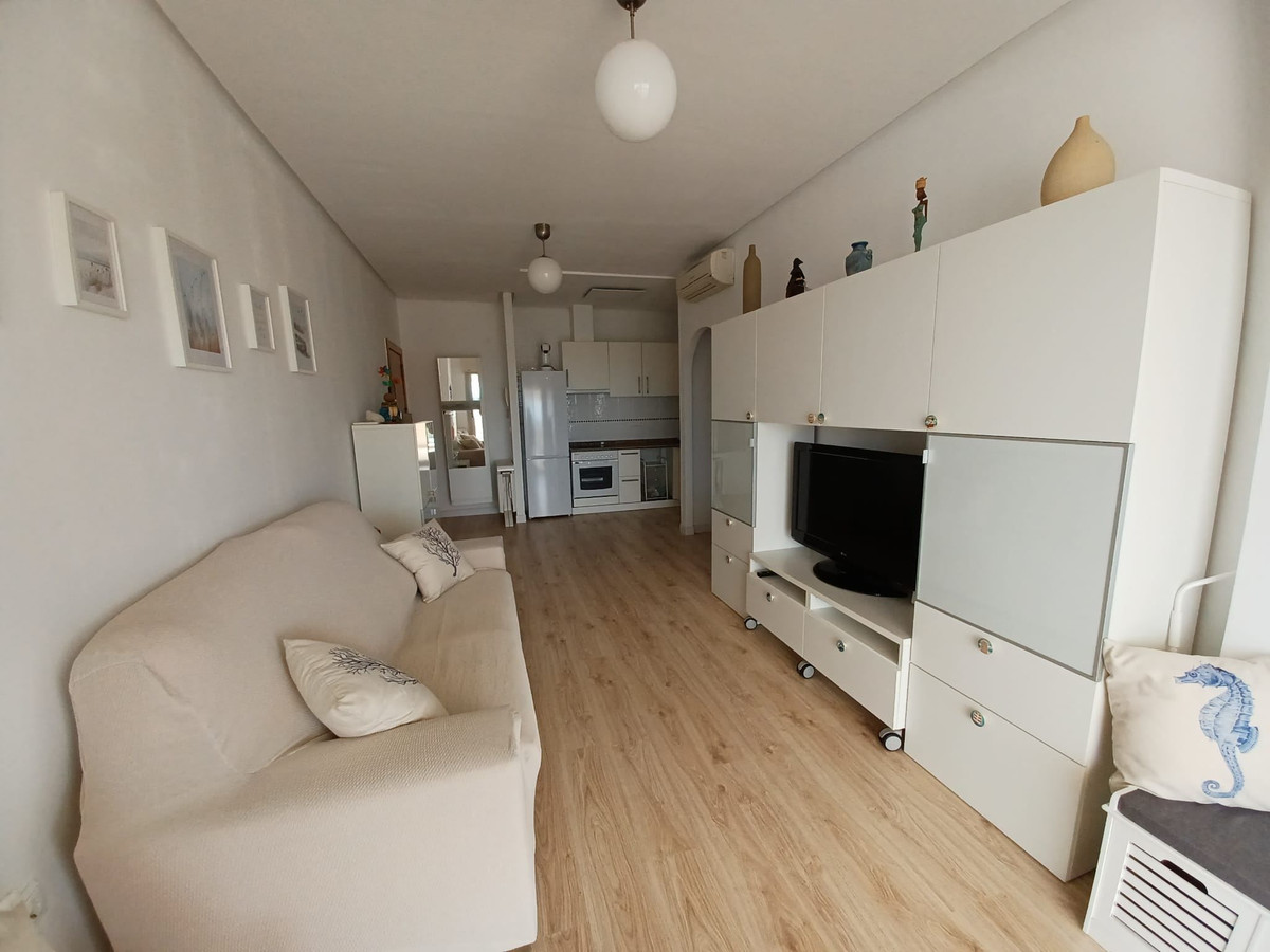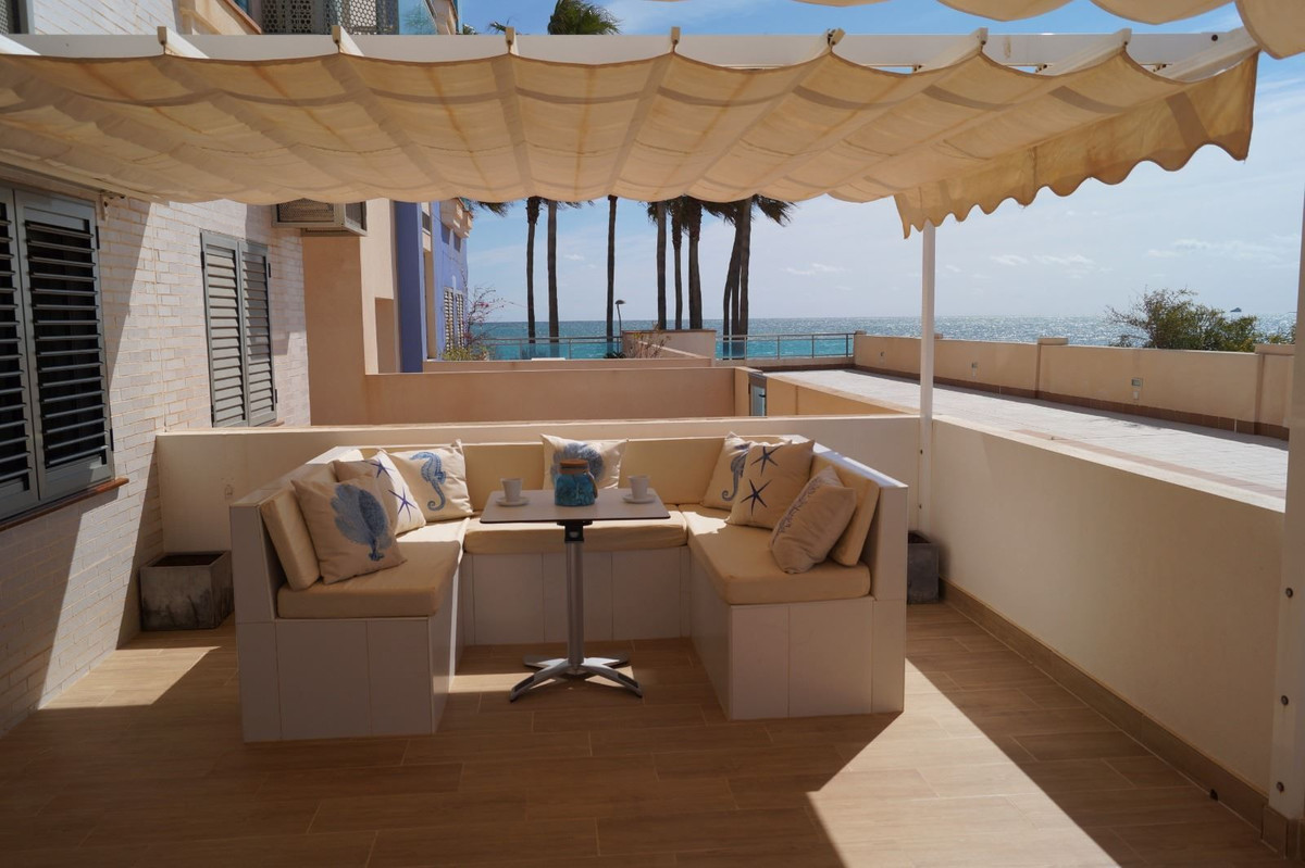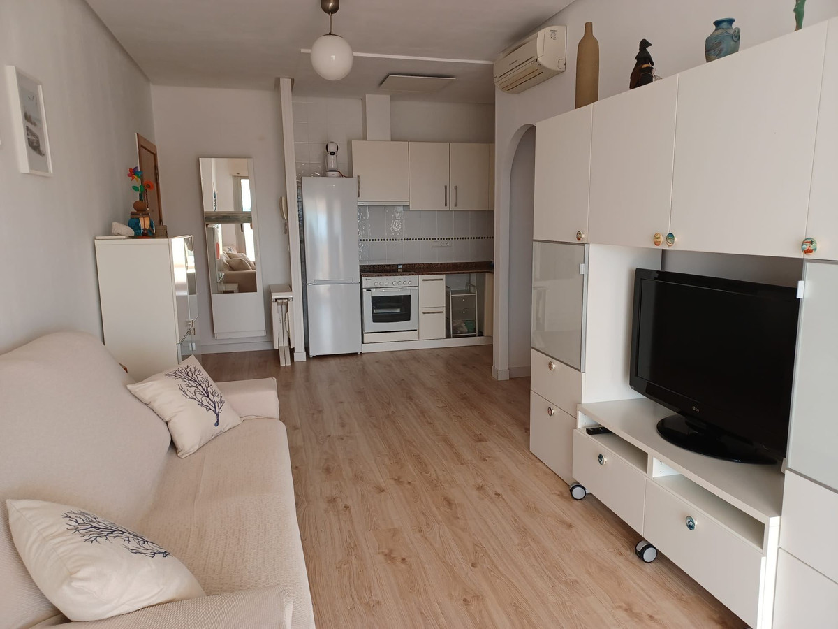 Modern and beachfront apartment with large terrace and shared pool A warm welcome to this charming and homely ground floor apartment with an inviting feel and generous light flow located in attractive La Manga. Here you live with views of Playa Veneziola, the Mar Menor and the mountains, as well as being close to shops and restaurants.