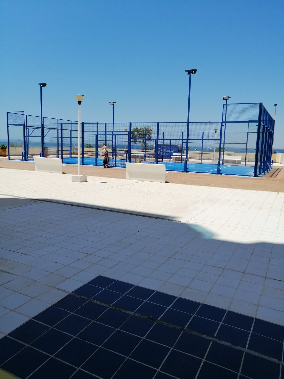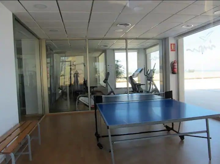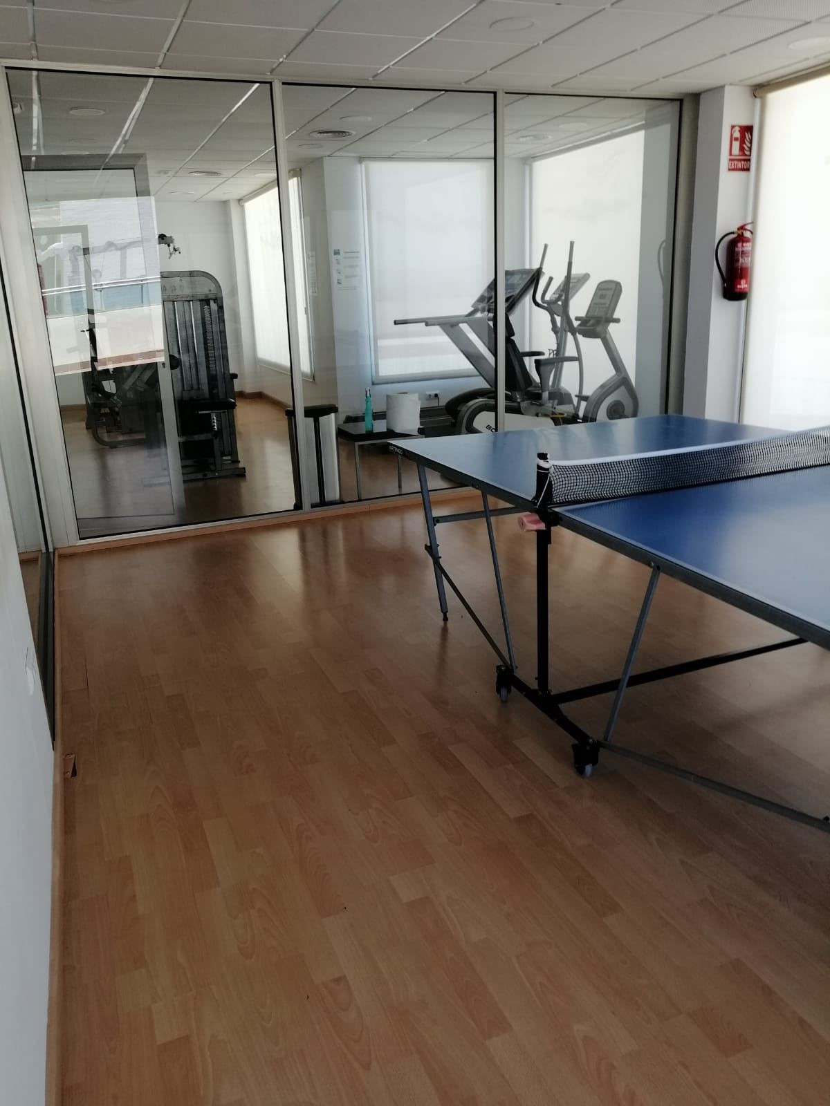 The common area has a swimming pool, gym and sauna. There is also a shared roof terrace in a sunny location.