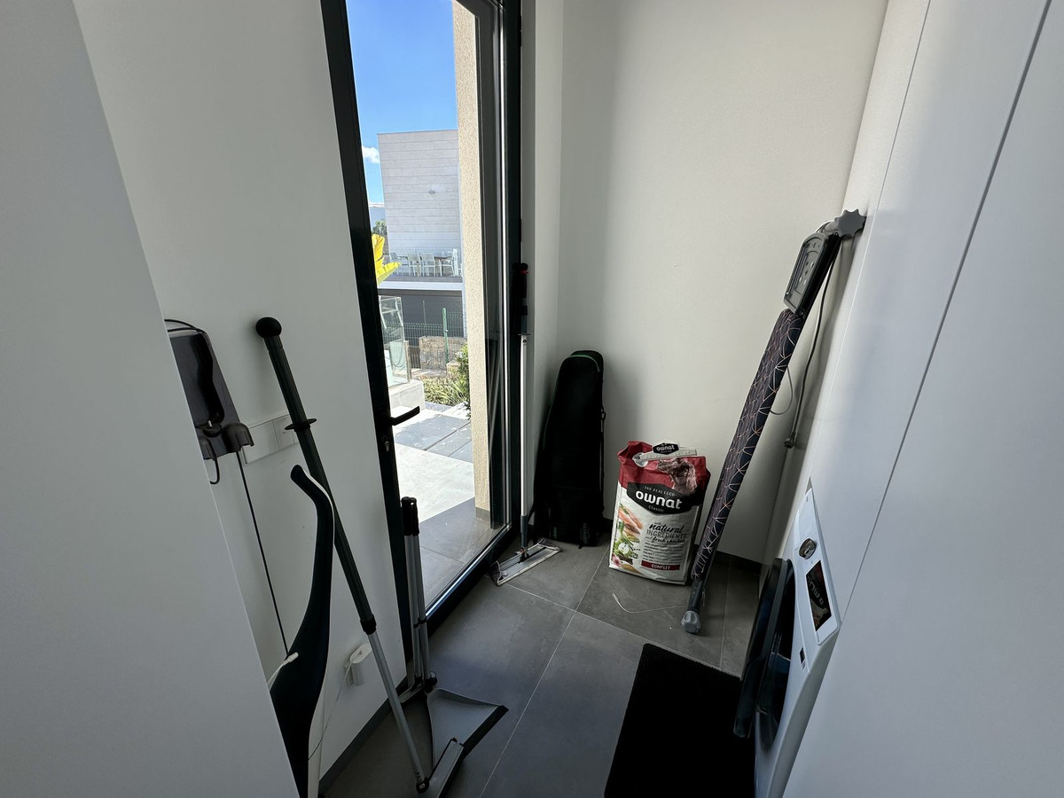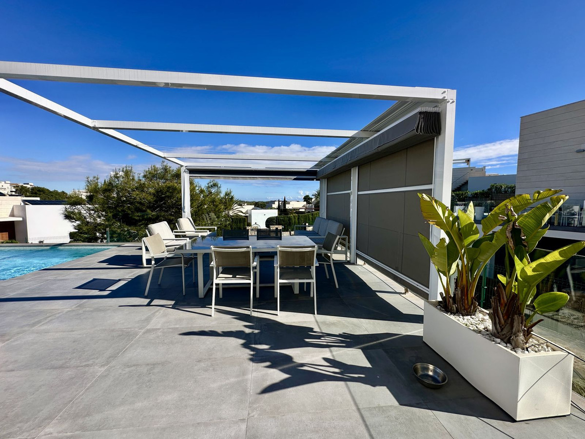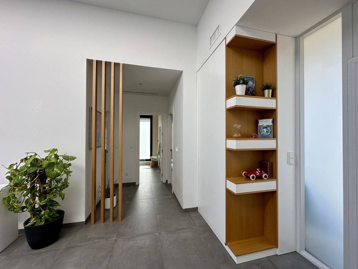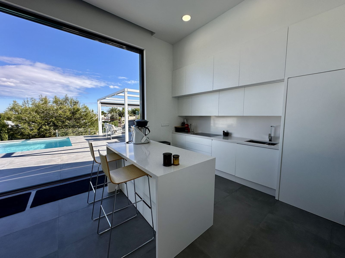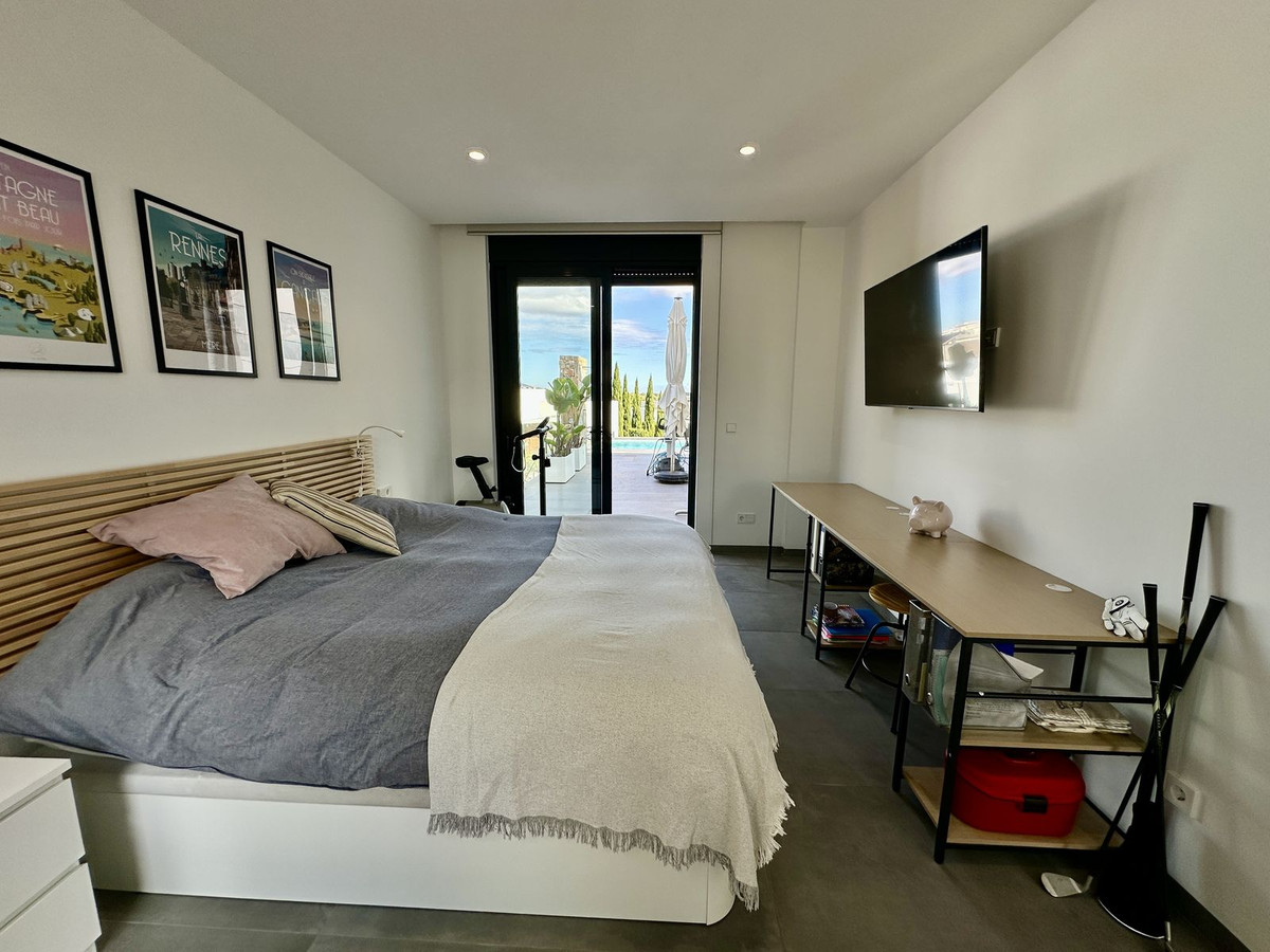Step inside to be welcomed by soaring ceilings and an abundance of natural light. A striking picture window seamlessly blends the interior living space with an expansive 87 m² south-facing terrace, showcasing a 10-meter heated saltwater pool with tranquil views over the pine trees.